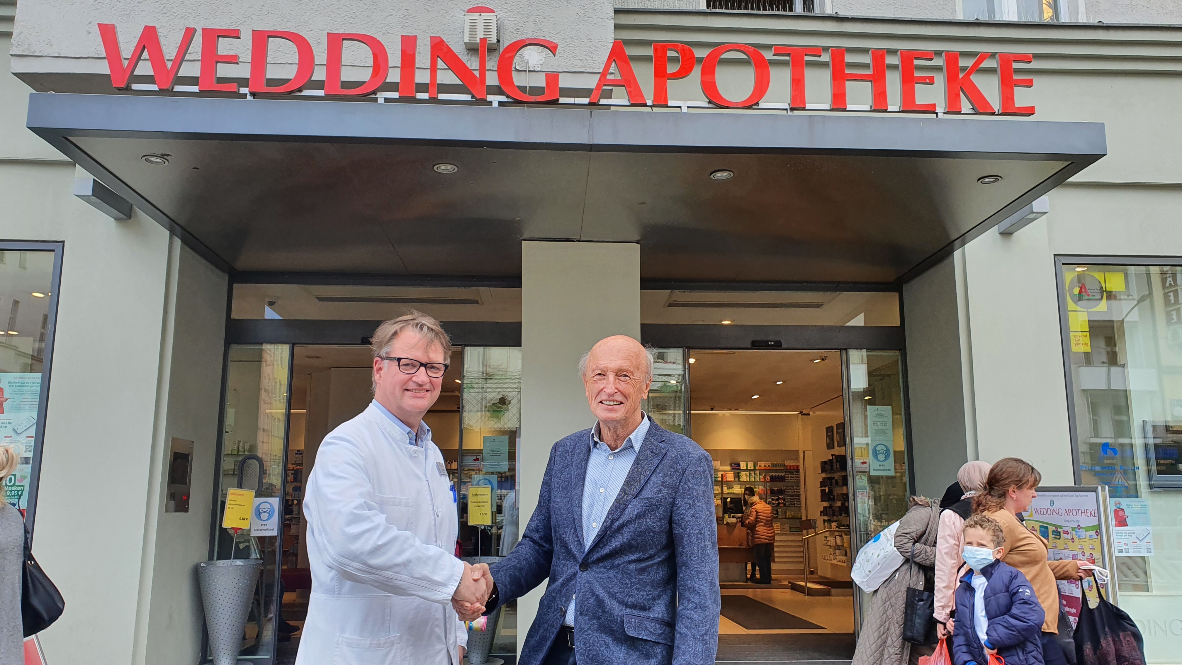 Nach jahrelanger Nachfolgersuche hatte Müller-de Ahna im Frühjahr seine drei Apotheken übergeben. Neuer Inhaber der Wedding-Apotheke und ihrer beiden Filialen ist Dr. Armin Kabat, der bislang die Pluspunkt-Apotheke in Lüdenscheid und Hemer betrieb. Und Pluspunkt spielt auch bei der neuen Apotheke eine wichtige Rolle: Denn der Standort in Berlin wird von einer Firma aus dem Umfeld geführt.