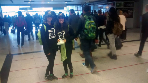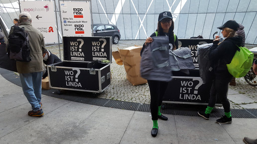 Marketingleiterin Vanessa Bandke dirigiert ihre Truppe am Aufgang der U-Bahnhofstation Messe Ost – mit Funkgerät im Ärmel. Sie hat zahlreiche Hostessen im Einsatz. Sie tragen Pullover mit dem Aufdruck „Wo ist Linda?“, die Mitarbeiter stehen nicht nur am Bahnhof. Auch an Ampeln verteilen sie an stoppende Autos große graue Taschen mit dem Linda-Logo – für das große Pröbchensammeln. Denn am Samstag zieht es erfahrungsgemäß zahlreiche PTA und Apotheker auf die Expopharm.