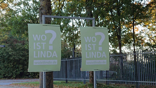 Die Poster entlang der Straße auf dem Weg zum Messegelände stechen zwischen den Wahlplakaten für die bayerischen Landtagswahl hervor. Statt einer Partei steht dort ebenfalls: „Wo ist Linda?“