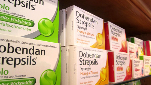 Exklusiv in der Offizin gibt es auch Dobendan direkt, das 8,75mg Flurbiprofen enthält. Der Ibuprofen-Abkömmling ist seit 2004 zur kurzzeitigen symptomatischen Behandlung bei schmerzhaften Entzündungen der Rachenschleimhaut bei Erwachsenen und Kindern über 12 Jahre verschreibungsfrei. Die Lutschtabletten, früher bekannt unter den Namen Strepfen und Doprofen, sind seit 2001 auf dem Markt. Nachdem der Wirkstoff im April mit Verspätung auch in anderen Formen auf den Markt gebracht wurde, könnte der Konzern demnächst ein Granulat auf den Markt bringen.