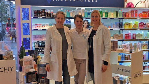 Das Weihnachtsgeschäft zählt zur umsatzstärksten Zeit in den Apotheken. Die Mitarbeiter haben alle Hände voll zu tun; vor allem Kosmetik ist gefragt. So wurden am 9. Dezember mehrere Apotheken von „Vichyanern“ tatkräftig unterstützt.