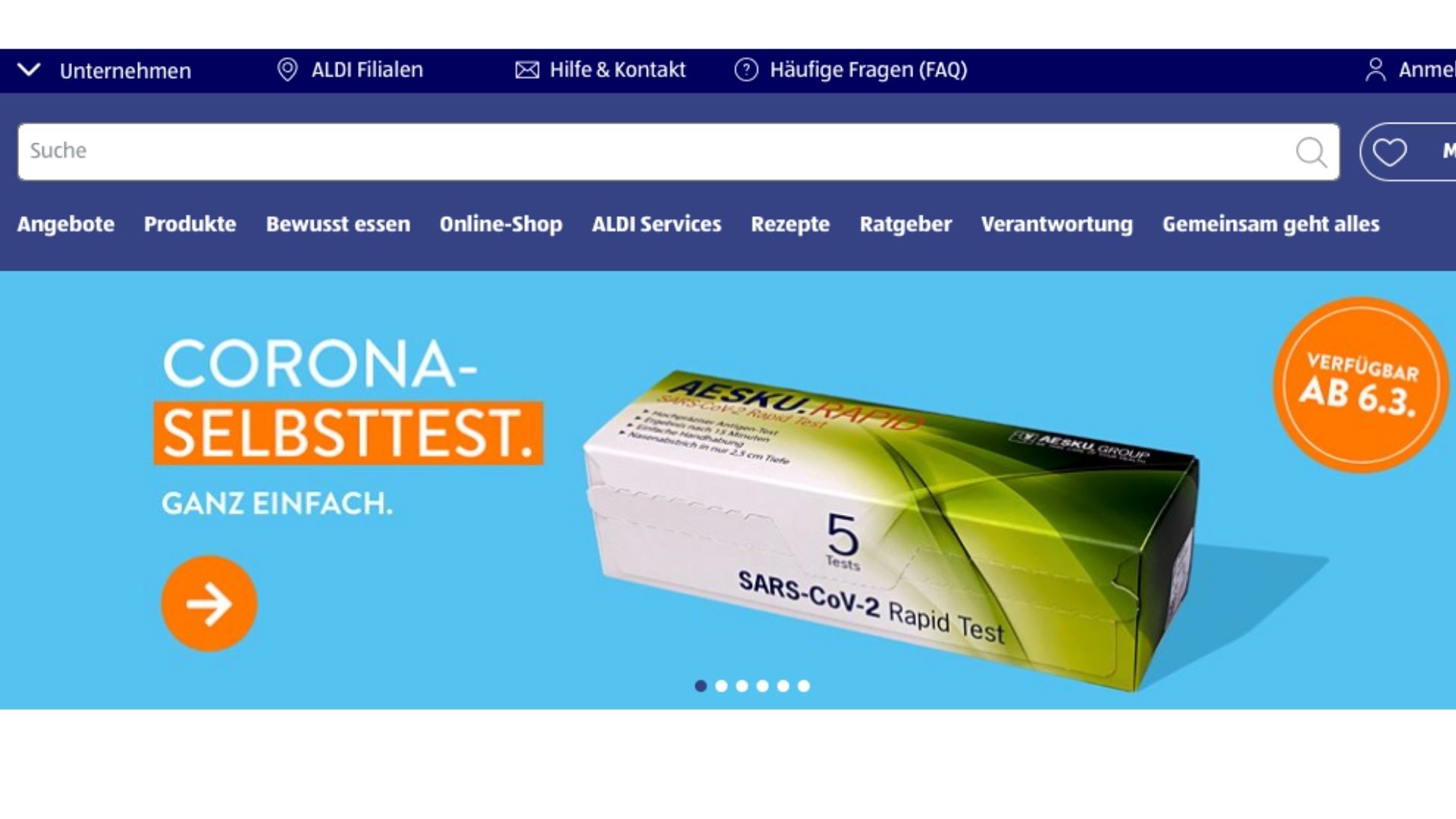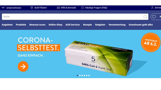 „Corona-Selbsttest. Ganz einfach“, so bewirbt Aldi Süd den Aesku.Rapid Schnelltest im aktuellen Newsletter. Ab Samstag soll dieser in den Filialen erhältlich sein. Der Schnelltest ist in einer Verpackungseinheit von fünf Stück verfügbar. Kostenpunkt: 24,99 Euro. Für die Sicherstellung der richtigen Anwendung stellt der Discounter diverse Anwendervideos auf der Internetseite bereit. „Das A&O der Selbsttests ist die korrekte Anwendung“, so Aldi.