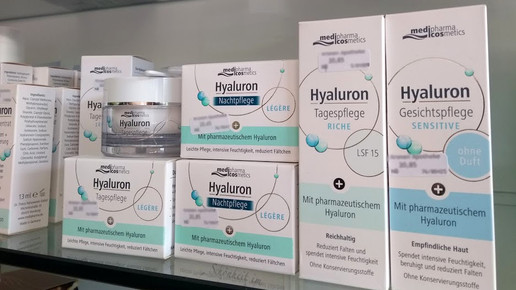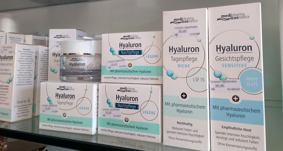 Weitere Hersteller, die auf Hyaluronsäure setzen sind Beiersdorf mit Eucerin Hyaluron-Filler. Der Hamburger Kosmetikkonzern brachte dieses Jahr unter der Dachmarke neu den Vitamin C Booster in die Offizin. Der Hamburger Konzern liegt mit einem Marktanteil von knapp 22 Prozent auf Platz 1. Auch andere Hersteller wie L’Oréal und Nuxe sowie Barbor erweiterten das Sortiment. Hyaluronsäure stimuliert die Zellteilung und wird deshalb in der Anti-Age-Kosmetik eingesetzt. Das Geschäft mit Faltenmitteln aus der Apotheke boomt: Das Segment wuchs um 6 Prozent.