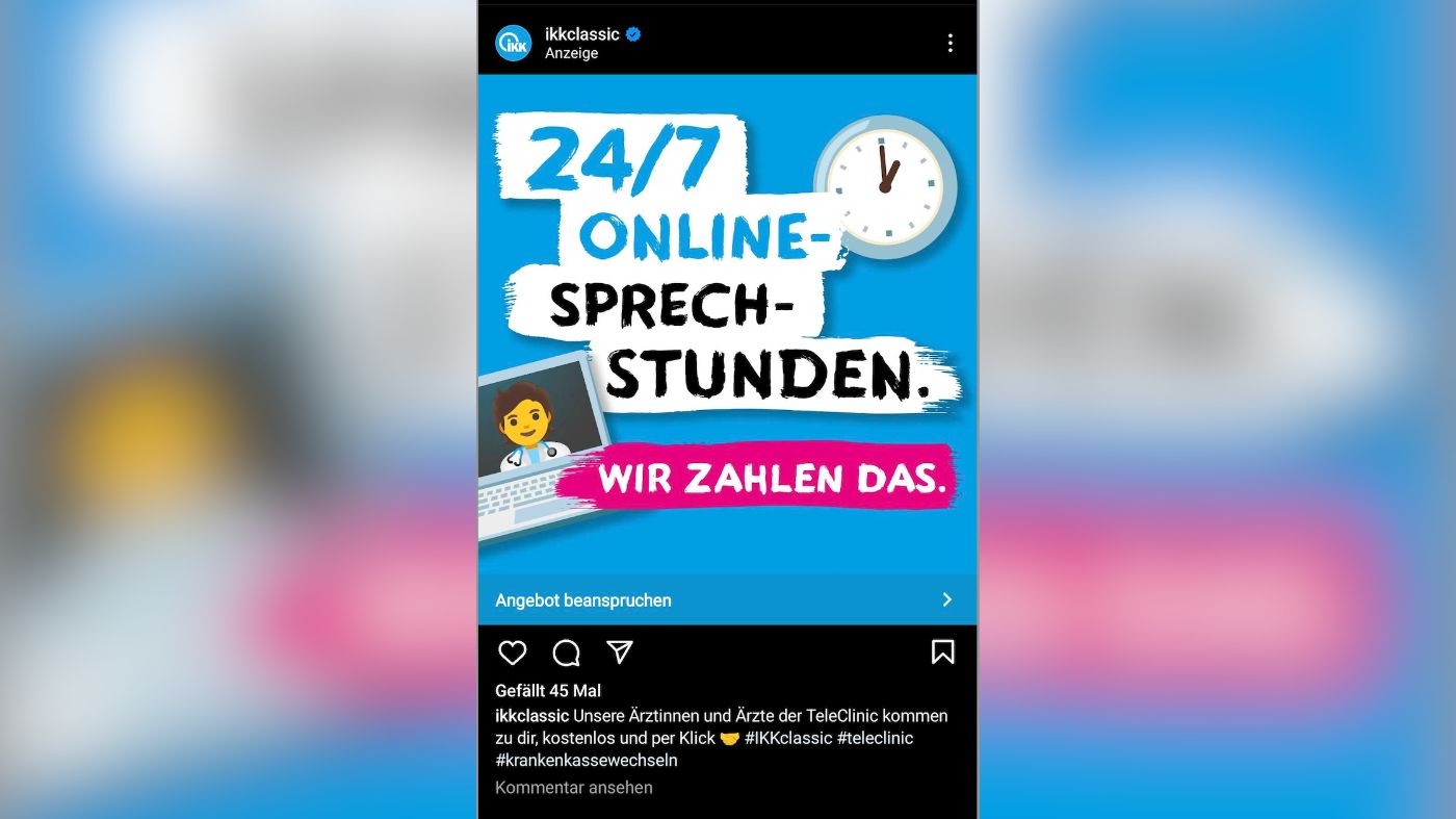 Seit 2021 gibt es das Angebot der IKK bereits, das derzeit wieder vermehrt beworben wird. „Unsere Ärztinnen und Ärzte der Teleclinic kommen zu dir, kostenlos und per Klick“ und „Wir zahlen das“, heißt es etwa bei Instagram.