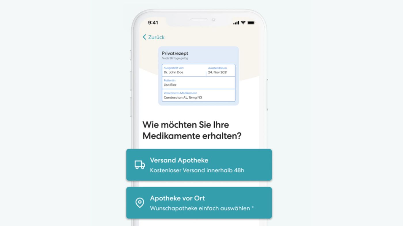 Für Anwender:innen heißt es zudem in der App, dass der Einlöse-Code aus der Teleclinic-App in der gewählten Apotheke vorgezeigt oder bei einer Versandapotheke hochgeladen werden könne. „Einfach bei einer Apotheke Ihrer Wahl oder bequem durch eine Versandapotheke oder einen Botendienst nach Hause liefern lassen.“ Zur Wahl wird hier die Versandapotheken-Option oben angezeigt mit kostenlosem Versand innerhalb von 48 Stunden.