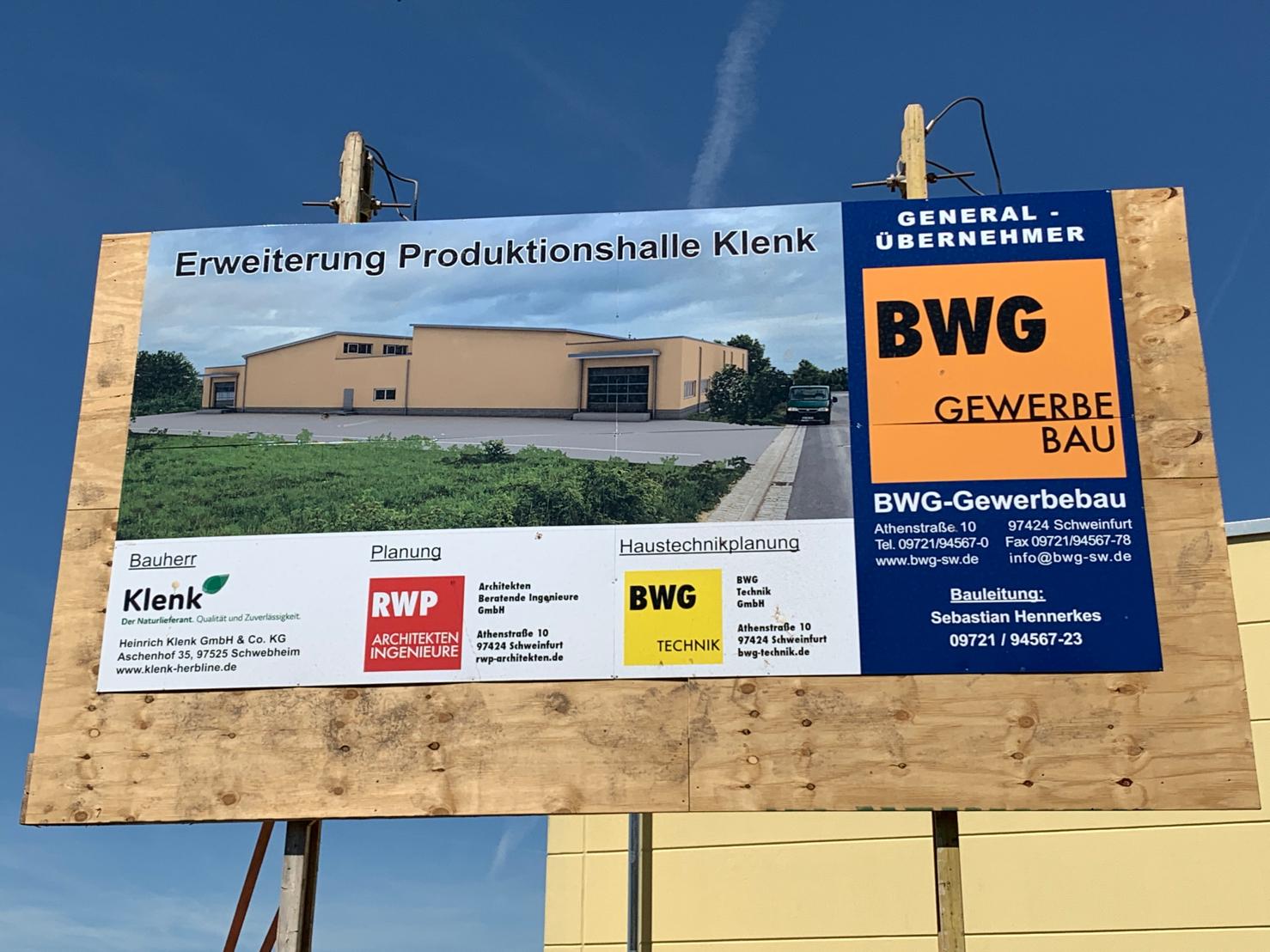Beim Rohstofflieferanten Klenk wird angebaut. Die Produktionsräume des Familienunternehmens mit Sitz im fränkischen Schwebheim sind zu klein geworden. Geplant ist eine Verdopplung der Fläche der Produktionsstätte im nahe gelegenen Gewerbegebiet Röthlein.