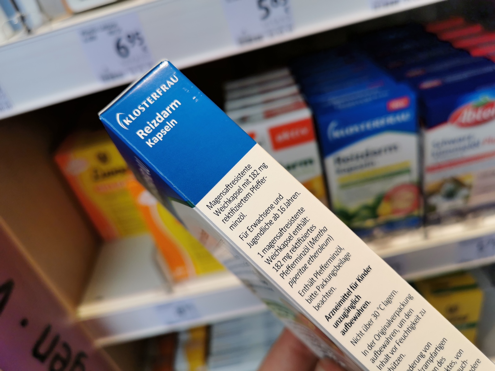 Mit den Reizdarm-Kapseln aus dem Mass Market greift Klosterfrau die apothekenpflichtigen Arzneimittel an. Erst vor wenigen Monaten hat Sanofi Buscomint in die Apotheken gebracht. Auch hier handelt es sich um magensaftresistente Weichkapseln mit 0,2 ml Pfefferminzöl, was einer Menge von 181,6 mg entspricht. Das pflanzliche Arzneimittel ist zugelassen zur symptomatischen Linderung von Bauchschmerzen, leichten Krämpfen im Magen-Darm-Trakt und Flatulenz, besonders bei Patienten mit Reizdarmsyndrom, und kann bereits ab einem Alter von 12 Jahren oder einem Körpergewicht von mindestens 40 kg angewendet werden. Auch hier liegt die empfohlene Tagesdosis bei dreimal täglich je eine Kapsel.