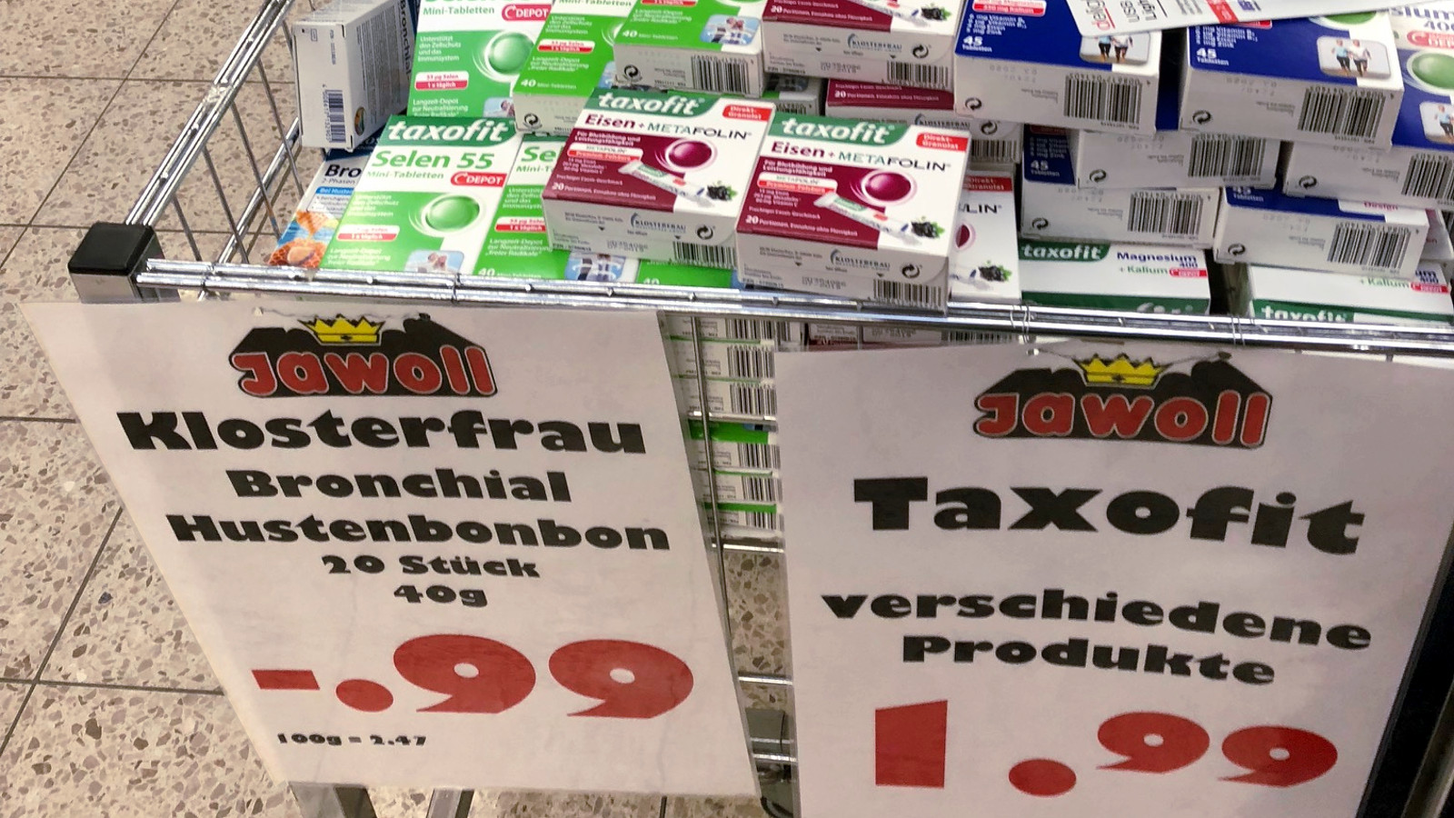 Dass Apothekenmarken bei dm und Rossmann auftauchen, gefällt den Apothekern nicht. Wenn Drogerieartikel zu Edeka oder gar zu Lidl abwandern, haben die Drogerieketten ein Problem. Doch es geht noch schlimmer. Aktuell sind Klosterfrau-Produkte als Restposten bei Jawoll zu finden.