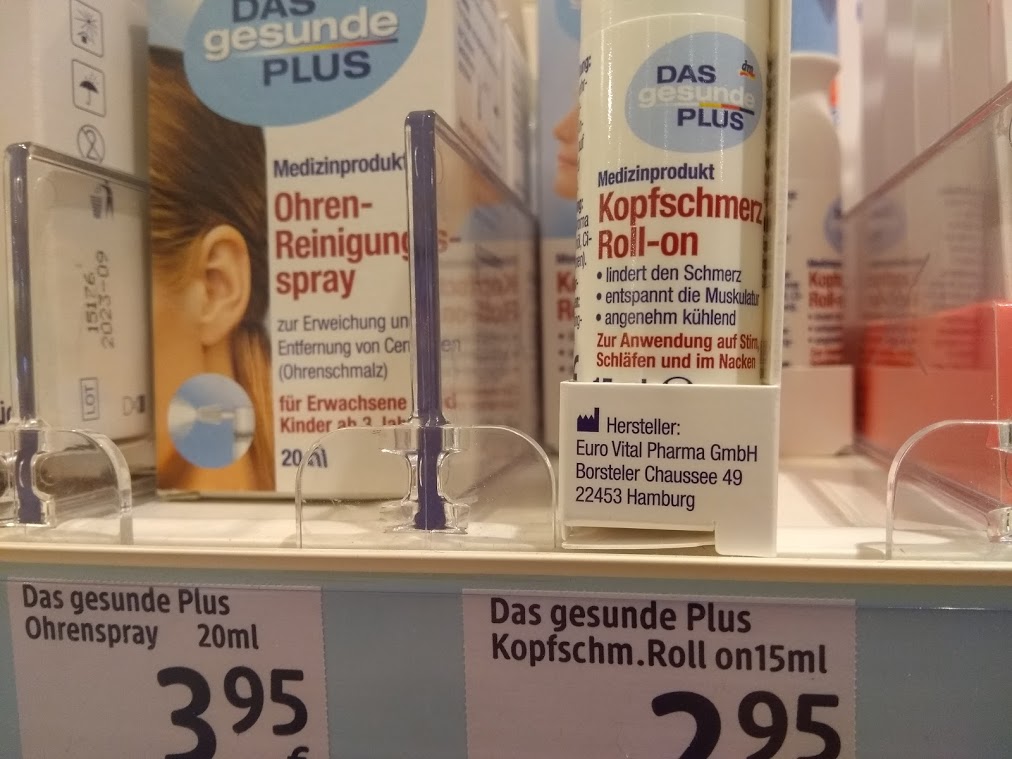 Hersteller ist Euro-Vital. Die Hamburger Firma ist laut eigenen Angaben Marktführer für Handelsmarken im Bereich Consumer Healthcare. Das Sortiment umfasst rund 300 Artikel, davon rund 20 Medizinprodukte sowie rund 40 Zulassungen für OTC-Arzneimittel.