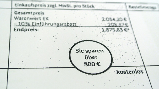 Der Hersteller weist zudem darauf hin, dass das Erstausstattungspaket inklusive Einführungsrabatt und Gratisproben nur noch bis zum 28. Februar bestellt werden kann. Danach muss für die Tester und Probiergrößen sowie für die Navigationselemente und Dauerdisplays extra bezahlt werden, in der Summe rund 560 Euro.