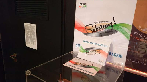 Die Kytta-Schulung stand unter dem Motto „Schulung mit Substanz“. In zwei Blöcken wurden in diesem Jahr 16 Termine in ganz Deutschland abgehalten. Die Teilnehmer erhielten eine Einladungskarte, die jedoch noch nicht viel verriet. Statt in Hotels wurden Apotheker und PTA in Veranstaltungsräume mit Bühne geladen. Von der geplanten Vorführung erfuhren sie erst vor Ort.