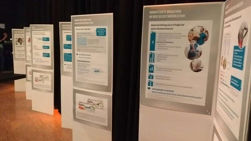 Bevor die Show begann, gab es eine Aufgabe. Der Moderator kündigte den Anwesenden an, dass es weder eine Power-Point-Präsentation noch Referenten gebe. Die Teilnehmer sollten Fragen beantworten. Behilflich dabei waren Aufsteller mit Informationspostern und Patientenprofilen in einer „Wissensausstellung“. Der Inhalt drehte sich natürlich um Kytta und die Einsatzgebiete der apothekenpflichtigen Schmerzsalbe. Der Moderator kündigte zudem an, dass sich die Teilnehmer später auch bei der Aufführung einbringen könnten. Im Publikum war man noch skeptisch: „Ich geh nicht auf die Bühne“, raunte es.