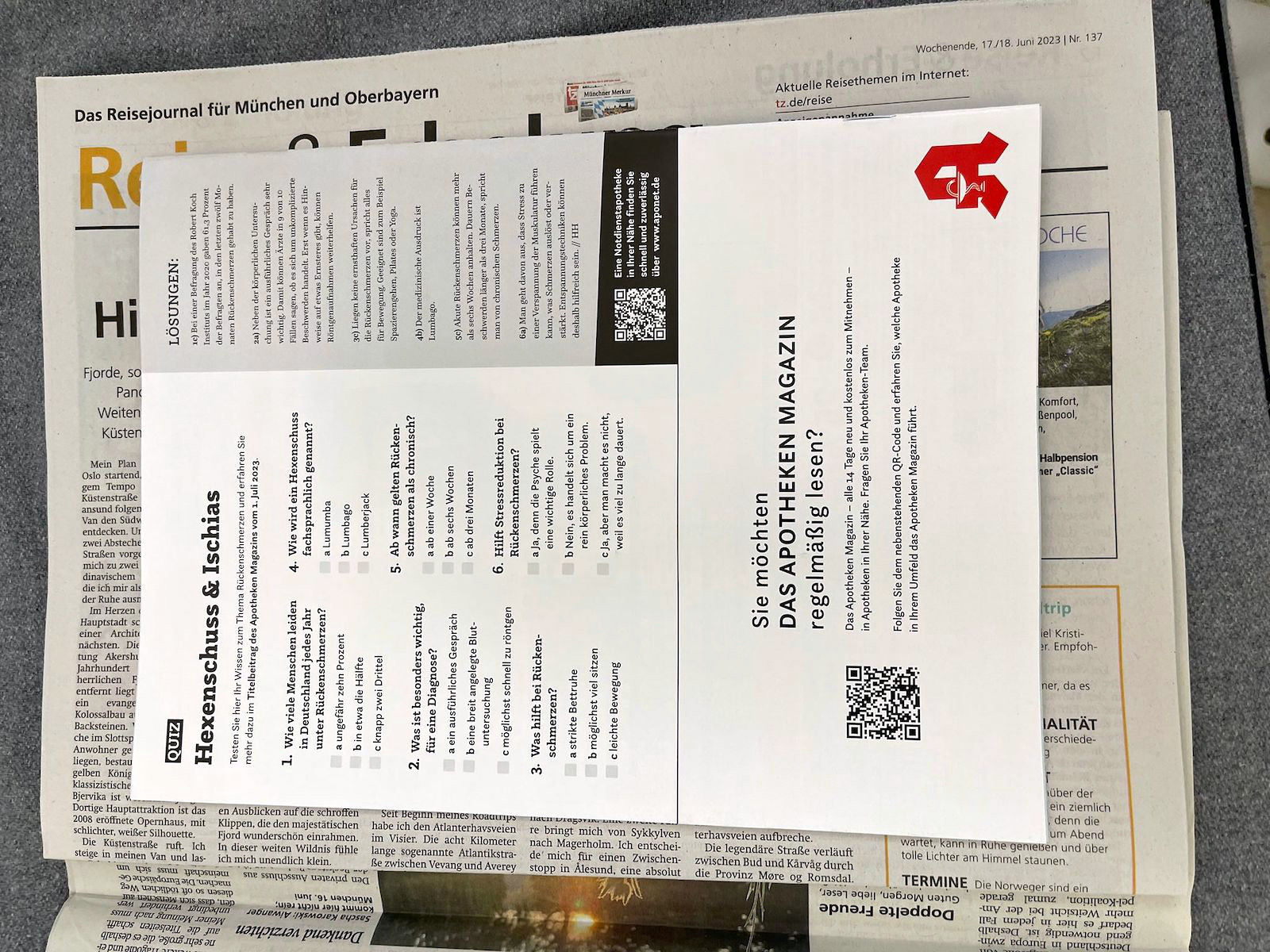 Parallel trommelt die Abda-Tochter aber auch bei den Verbraucherinnen und Verbrauchern: Als Beileger in verschiedenen Regionalzeitungen werden derzeit Gratisexemplare verteilt – verbunden mit der Botschaft: „Sie möchten das Apotheken Magazin regelmäßig lesen? Alle 14 Tage neu und kostenlos zum Mitnehmen – in Apotheken in Ihrer Nähe. Fragen Sie Ihr Apotheken-Team.“