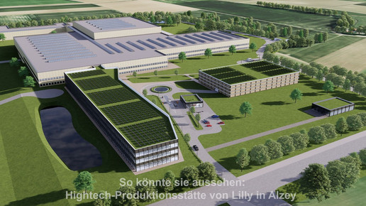 Der US-Pharmakonzern Lilly hat ein Jahr nach dem ersten Spatenstich in Alzey mit dem Bau einer Produktionsstätte für injizierbare Medikamente begonnen. Ein über 260 Meter langer Komplex aus Büros, Laboren sowie Produktions- und Lagerhallen soll entstehen. Lilly investiert an dem Standort in Rheinland-Pfalz rund 2,3 Milliarden Euro. 2027 soll die Produktionsstätte nach bisherigen Plänen des Unternehmens in Betrieb genommen werden.