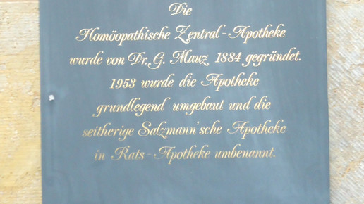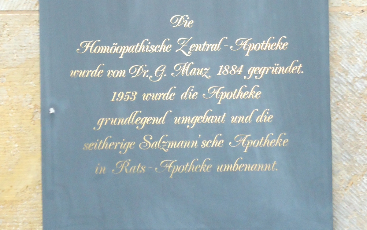 Im Jahr 1857 kehrte Gottlieb Mauz als Doktor aus der Schweiz in seine Heimatstadt zurück. Er übernahm seinen früheren Lehrbetrieb, die Salzmannsche Apotheke. Die Familie hatte gute Kontakte zum Württembergischen Königshof. So wurde Gottlieb fast 30 Jahre später von Königin Olga damit betraut, für die Verbreitung der Homöopathie eine eigenständige, von der klassischen Form völlig getrennte Form einer Apotheke aufzubauen. Diese wurde mit einer besonderen Betriebserlaubnis, dem königlichen Privileg, versehen und Homöopathische Zentralapotheke genannt. Der Apotheker erwarb dafür das Nachbarhaus, einen Kuhstall mit Getreidesilo.