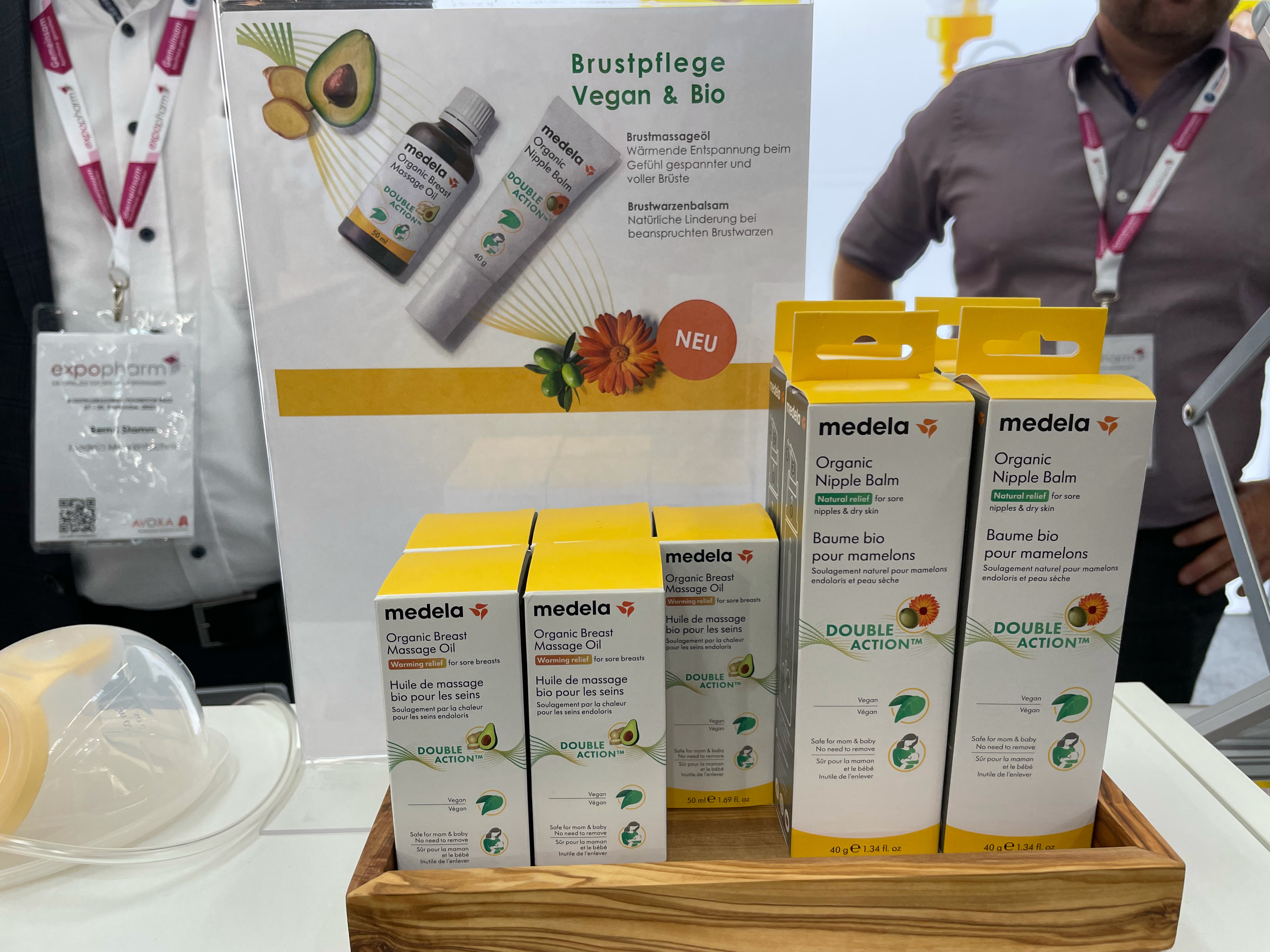 Außerdem kommt von Medela ein veganes Bio-Brustmassageöl zur wärmenden Entspannung beim Gefühl gespannter voller Brüste. Enthalten sind Avocadoöl und Ingwer. Avocadoöl soll die Haut mit Feuchtigkeit versorgen und Ingwer für die wärmende Entspannung der beanspruchten Brüste sorgen. Außerdem sind Olivenöl und Calendula enthalten. Für eine Massage werden ein paar Tropfen in die Handfläche gegeben und die Brust sanft mit kreisenden Bewegungen in Richtung Brustwarze für fünf bis zehn Minuten massiert. Das Öl muss vor dem Stillen oder Abpumpen nicht entfernt werden.