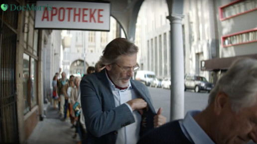 Im selben Spot werden auch die Vor-Ort-Apotheken attackiert: In einer Szene gibt es eine Warteschlange vor der Apotheke. „Warum nicht auch das Rezept per App bekommen? Warum nicht selbst entscheiden, ob ich mein Medikament an der Apotheke oder an der Haustür kriege?“ Eine Frau reißt freudig ihr geliefertes Paket auf. Und weiter: Gesundheit werde immer komplexer. „Können wir es da nicht wenigstens einfacher machen, an sie ranzukommen? Kann man Gesundheit nicht irgendwie neu denken? Lasst uns doch damit anfangen. Das neue Gesund: DocMorris.“