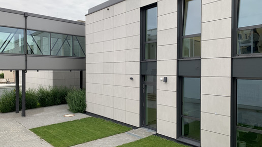 Am neuen Außengelände mit seinen großzügigen Grünflächen wird noch gearbeitet: Bis Herbst werden die neue Terrasse des Betriebsrestaurants, Ruheorte mit Sitzgelegenheiten sowie Flächen für Meetings unter freiem Himmel vorhanden sein. Zusätzliche Parkplätze, die mit Ladestationen für Elektrofahrzeuge und E-Bikes ausgestattet sind, werden zudem entstehen.