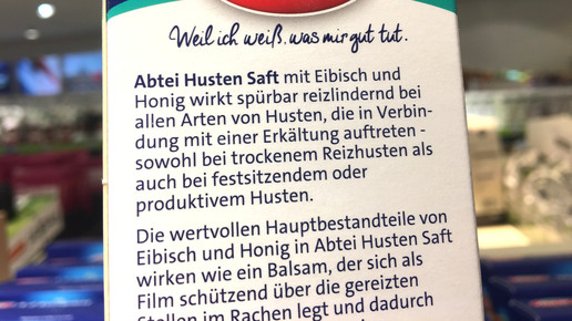 Von dem Saft können Kinder ab einem Jahr bis zu dreimal täglich je 5 ml einnehmen. Bei älteren Kindern kann die Gabe erhöht werden. Abtei vertreibt bereits für Patienten ab zwölf Jahren einen Hustensaft mit Eibisch und Honig. Für die Erwachsenen-Variante gab es zuletzt Kritik an der Werbeaussage des Herstellers: Nach einem Beschluss des Oberlandesgerichts Hamm (OLG) darf er nicht mehr behaupten, sein „Abtei Husten Saft Eibisch und Honig“ wirke gegen alle Arten von Husten.