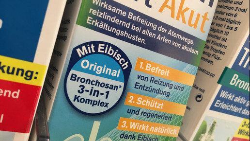 Auch im Erkältungssortiment gibt es Neuheiten: Der Bronchosan Hustensaft Akut mit Eibischwurzel-Trockenextrakt, Propolis-Extrakt und Honig soll trockenen Reizhusten und Heiserkeit lindern. Der verwendete Propolis-Extrakt enthält mindestens 15 mg Polyphenole je Milliliter und mindestens 1 mg des Flavonoids Galangin pro Mililiter. Polyphenole sollen entzündungshemmend wirken und die Zellen vor freien Radikalen schützen. Galangin werden antibakterielle, antivirale und antioxidative Eigenschaften zugeschrieben. Der Hustensaft ist für Kinder ab einem Jahr geeignet, hier liegt die Dosierung bei 3-mal täglich 2,5 ml. Ab dem dritten Lebensjahr können 3-mal täglich 5 ml gegeben werden. Erwachsene und Kinder ab 12 Jahren nehmen 3- bis 5-mal täglich 5 ml ein. Die Einnahme sollte nach dem Essen erfolgen. Eine Packung mit 117 ml kostet 5,45 Euro.