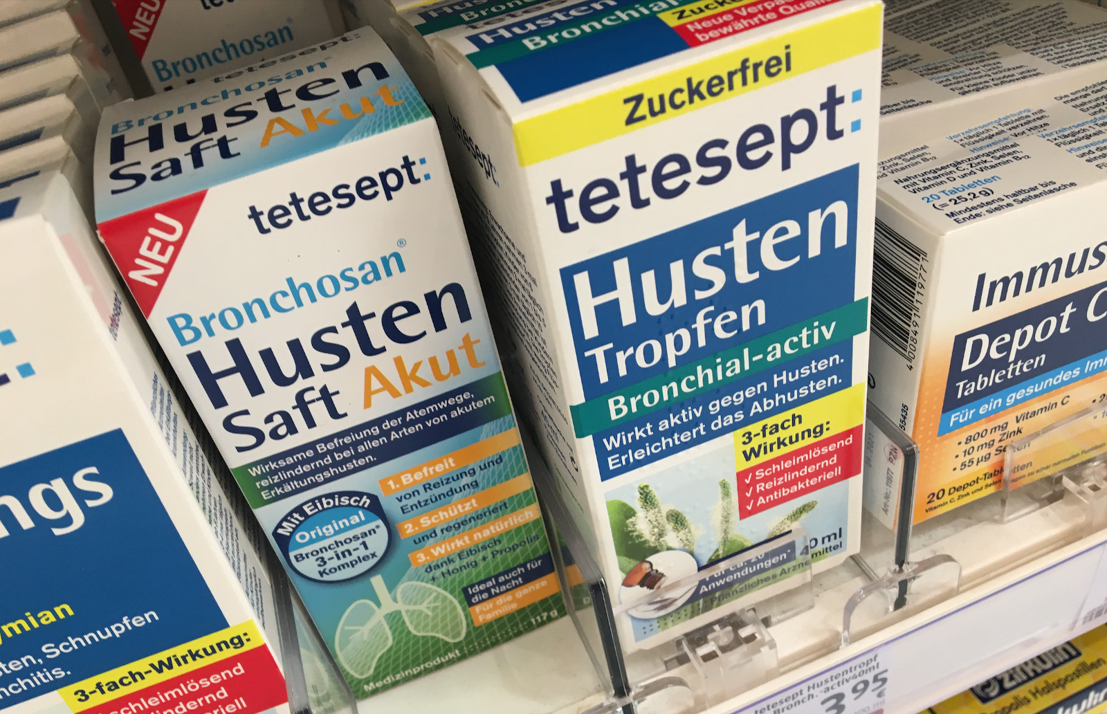 Mit den Hustentropfen Bronchial-activ bietet Tetesept ein weiteres pflanzliches Präparat zur Linderung des trockenen Reizhustens bei beginnender Erkältung. Das Antitussivum ist als alkoholhaltige (2,5 Prozent Ethanol) und alkoholfreie Variante verfügbar. Beide Produkte sind für Kinder ab einem Jahr geeignet. Die alkoholfreie Formulierung ist ebenso zuckerfrei und somit für Diabetiker geeignet.