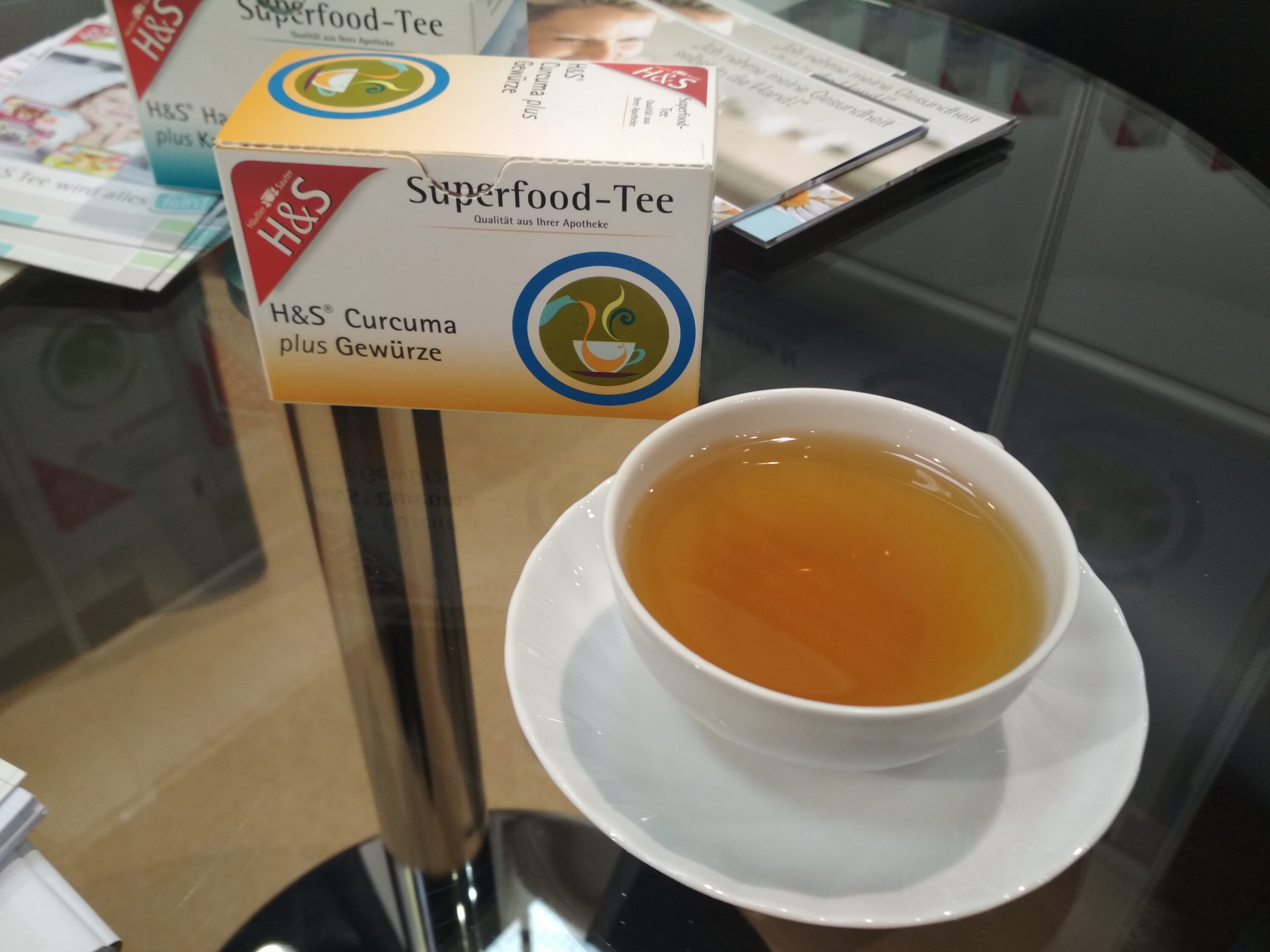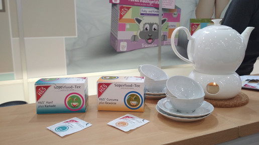 H&S erweitert sein Superfood-Teesortiment um die Sorten Hanf plus Karkade sowie Curcuma plus Gewürze. Hanf besitzt in der Teemischung keine berauschende, sondern lediglich eine entspannende Wirkung. Der Kurkumawurzel wird durch das enthaltene Curcumin eine entzündungshemmende und schmerzlindernde Wirkung nachgesagt. Die zubereiteten Tees können warm oder kalt getrunken werden. Auf der Rückseite der Verpackungen werden dem Kunden direkt Rezeptvorschläge für gesunde Smoothies gegeben. Hierfür wird der Inhalt von zwei Beuteln mit weiteren Zutaten vermischt.
