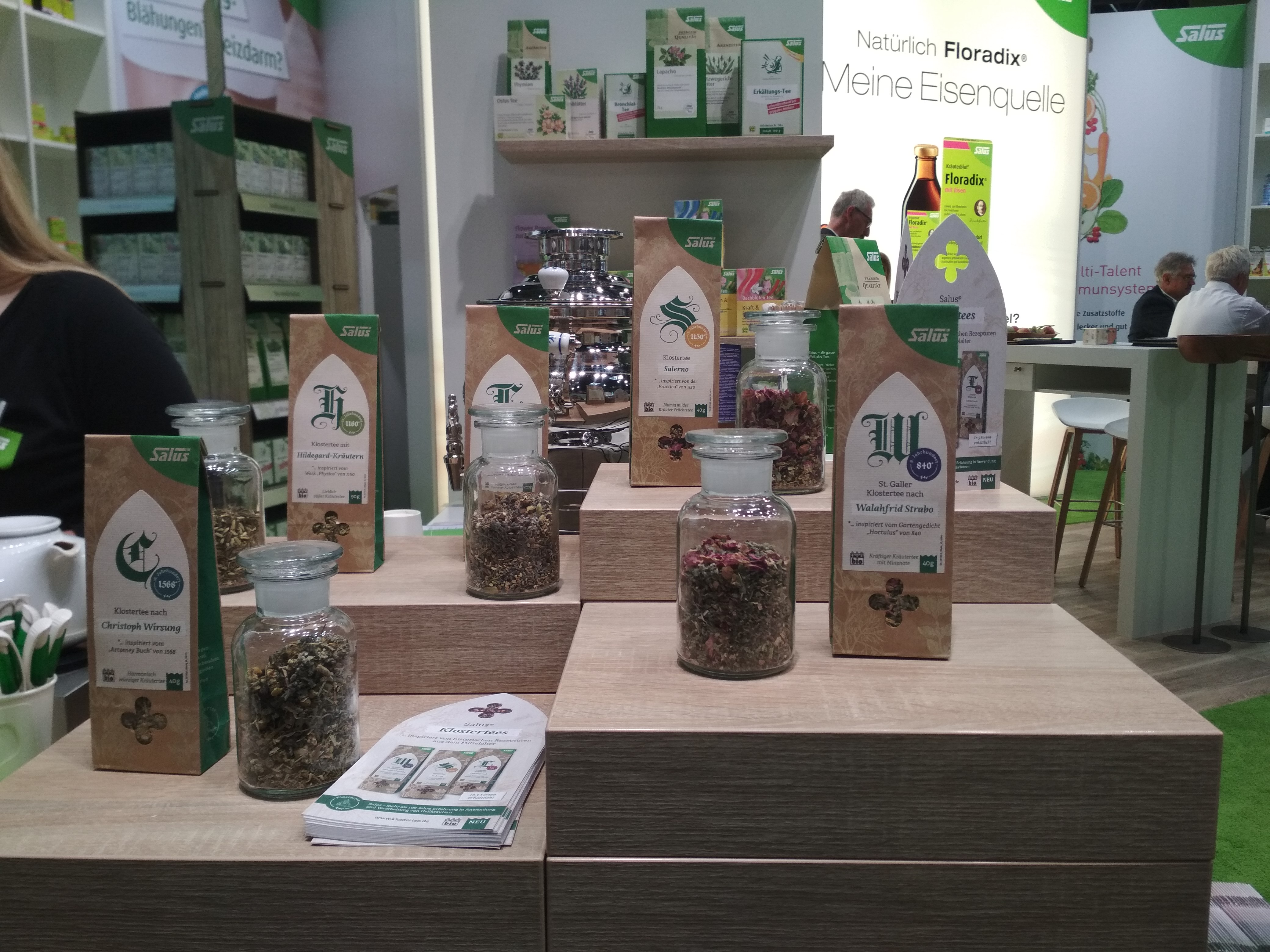 Salus hat zusammen mit der Forschungsgruppe Klostermedizin der Universität Würzburg fünf Klostertees entwickelt. Die Mischungen beruhen auf alten Originalrezepturen mit Bezug zu historischen Dokumenten. Alle Teemischungen kommen als lose Teemischung in Bio-Qualität abgepackt zu 40 Gramm oder 90 Gramm.