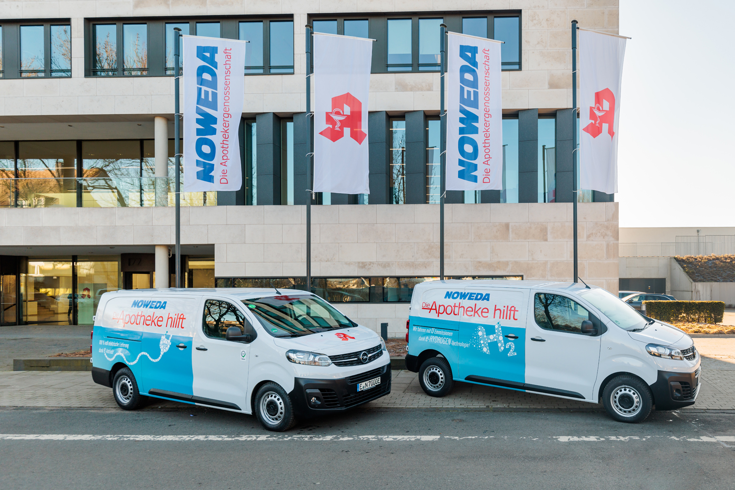 Um dem gerecht zu werden, kooperiert Noweda mit Opel sowie mit den Fahrzeugumbauern CSA ClimaVan Solutions Automotive und Fahrzeugbau Dülmer. Die Partner haben einen Opel Vivaro-e Hydrogen mit Brennstoffzellentechnologie sowie einen Opel Vivaro-e mit batterieelektrischem Antrieb so modifiziert, dass die Fahrzeuge nun die spezifischen Anforderungen für die Arzneimittellogistik erfüllen.