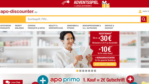 Apo-Discounter hatte noch nach Inkrafttreten des VOASG auf der Startseite für Rx-Boni geworben. Wer auf den Banner klickte, wurde auf FAQ zum Thema weitergeleitet: „Rezept einlösen bei apo.com. So funktioniert‘s!“ Von da aus gelangte man auf die Website der niederländischen Schwester, wo nach wie vor auf der Startseite damit geworben wurde: „Rezept einlösen – Bonus sichern!“ Bis zu 30 Euro wurden pro Rezept gewährt, jeweils abhängig vom Preis der Arzneimittel. Mindestens 2,50 Euro pro Packung waren garantiert.