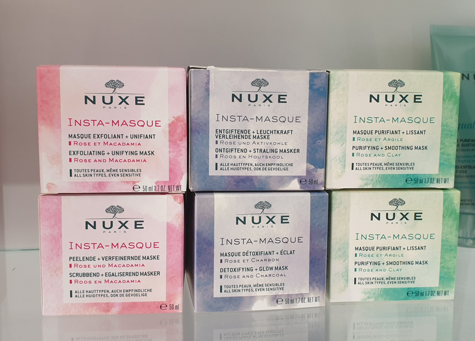 Desweiteren wurden die neuen Masken vorgestellt: Die Insta-Masque ist in drei verschiedenen Formulierungen erhältlich. Alle sollen großzügig auf die trockene Haut aufgetragen werden und zwei Minuten einwirken. Anschließend sollen die Hände leicht befeuchtet und das Produkt mit Kreisbewegungen einmassiert werden. Zum Schluss wird es mit Wasser abgewaschen. Alle Masken können auch für eine Express-Pflege unter der Dusche angewendet werden.