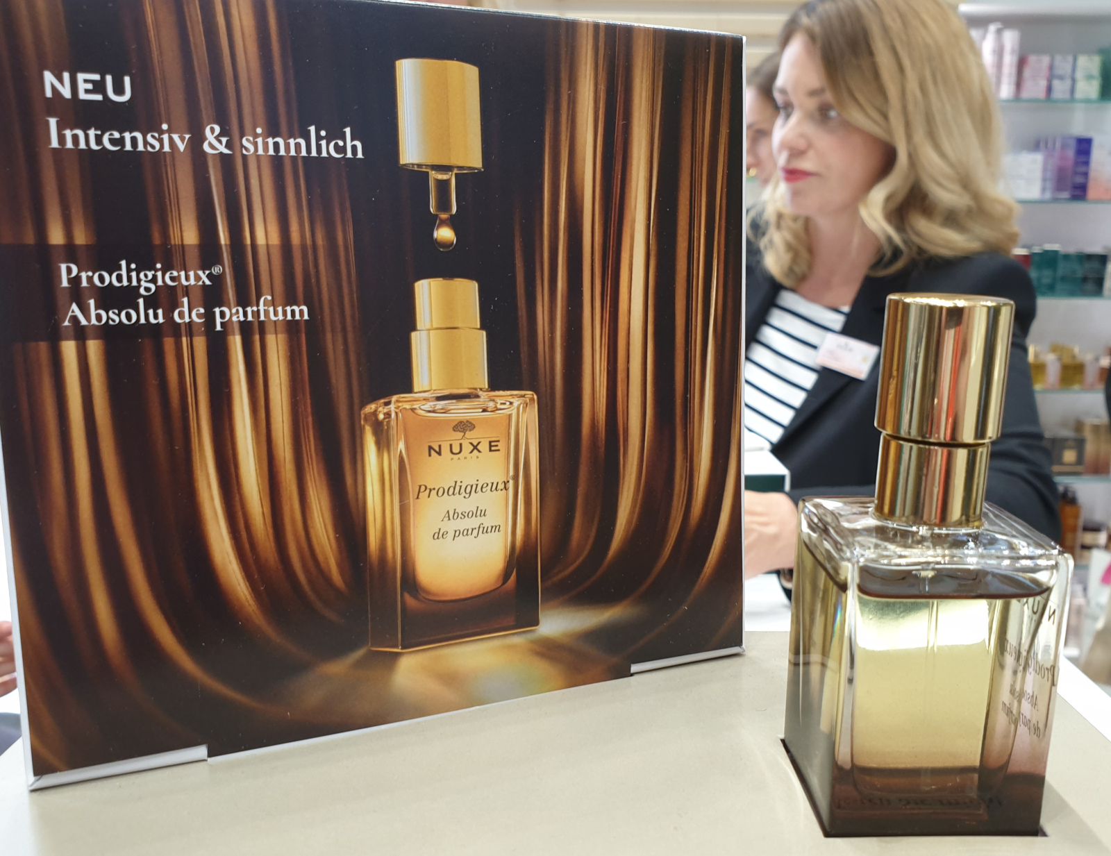 Der französische Kosmetikhersteller Nuxe stellte an seinem Expopharm-Stand gleich drei verschiedene Neuheiten vor: Neben einer neuen Masken-Serie ist der Klassiker Huile Prodigieuse mit einem neuen Duft erhältlich, außerdem gibt es den Prodigieux-Duft als Absolu de parfum.