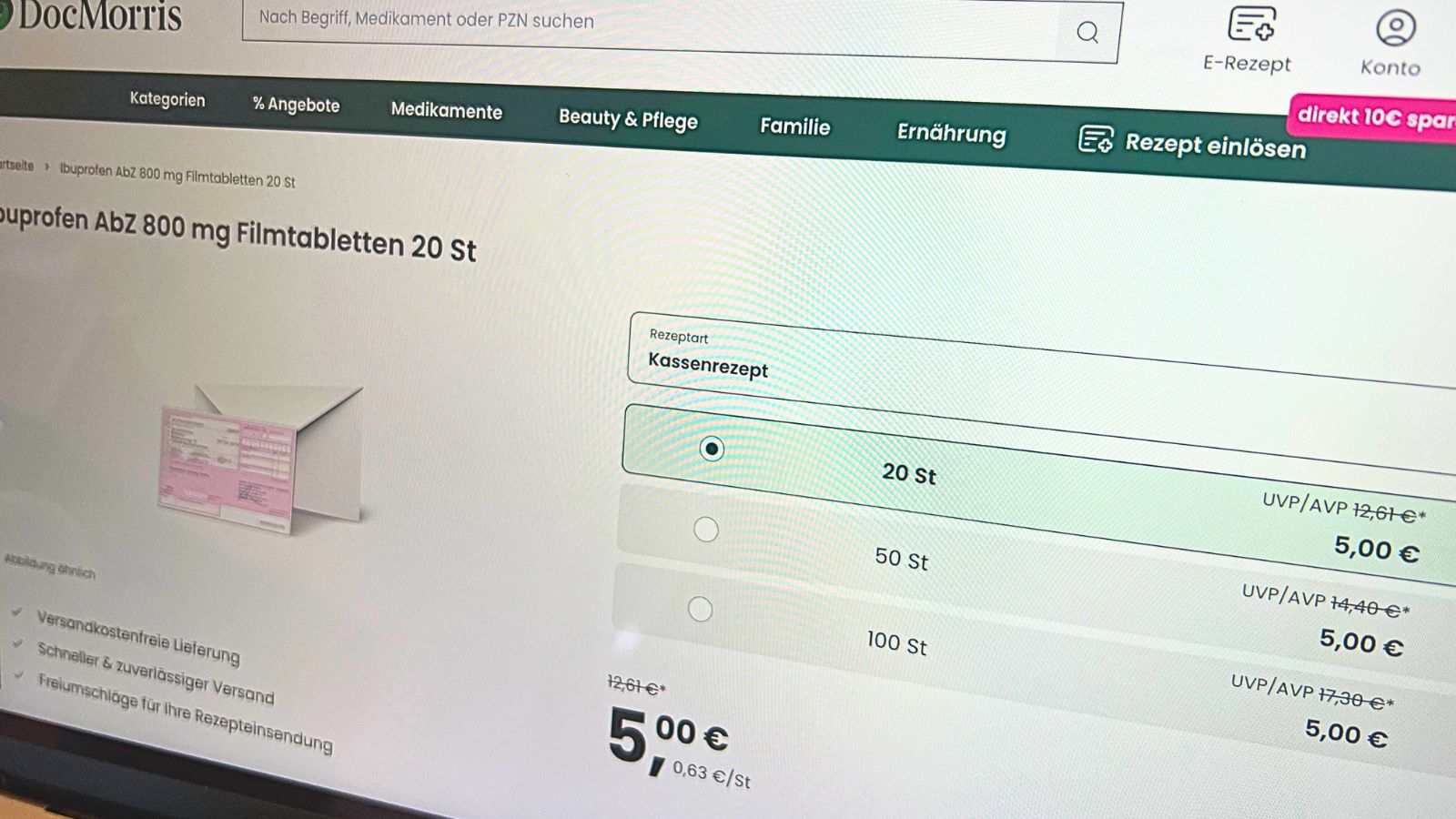 „Erneut bewirbt sie [die Schuldnerin, Docmorris] Medikamentenpreise dergestalt, dass sie einen UVP/AVP angibt, der durchgestrichen wird. Sodann wird ein Betrag in Euro ausgewiesen, der augenscheinlich den Preis darstellen soll. Tatsächlich handelt es sich bei diesem Betrag um den Eigenanteil, den ein Kassenpatient bei dem jeweiligen Medikament zuzahlen muss. Es wird also erneut suggeriert, dass der ausgewiesene Preis im Verhältnis zum angegebenen UVP/AVP besonders günstig ist, obwohl dieser schlicht den gesetzlichen Zuzahlungsbetrag darstellt“, so das Gericht. Bestritten habe DocMorris diesen offensichtlichen Verstoß gegenüber dem LG nicht.