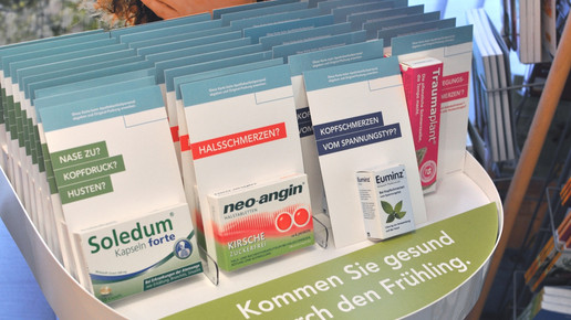 Natürlich wusste man bei Klosterfrau, dass OTC-Präparate nicht in die Freiwahl gehören. Doch mit Leerpackungen fühlte sich der Kölner Hersteller auf der sicheren Seite: Auf dem Tisch waren die Umkartons ohne Inhalt ausgestellt; die Kunden wurden aufgefordert, die Dummies am HV-Tisch gegen echte Ware umzutauschen. Nach einem Urteil des Landgerichts Köln (LG) änderte der Hersteller das Konzept: Anstelle von Packungen wurden Produktkarten platziert; dies hatten die Richter für zulässig erklärt.