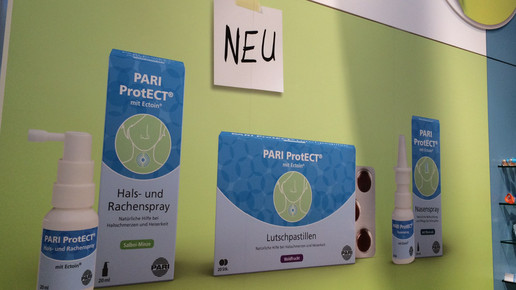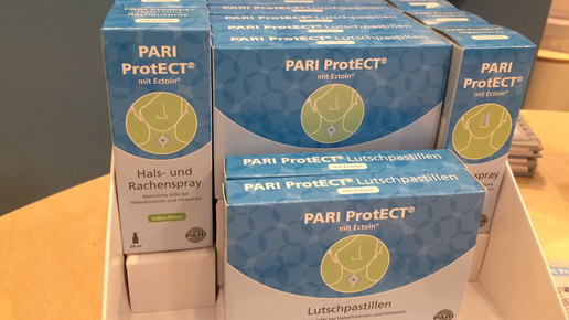 Unter der Marke Pari ProtECT sind auch ein Hals- und Rachenspray, Lutschtabletten und ein Nasenspray auf dem Markt. Die Produkte enthalten alle den Naturstoff Ectoin, der salzliebende Bakterien vor extremen Umweltbedingungen schützt. Das Zellschutzmolekül besitzt stark wasserbindende Eigenschaften und bildet laut Pari einen Ectoin-Hydrokomplex. Dieser könne bei den ersten Anzeichen einer Erkältung – schützend, befeuchtend, beruhigend und leicht entzündungshemmend wirksam sein. Die Präparate sollen die trockenen und irritierten Schleimhäute in Mund, Rachen oder Nase befeuchten und den Regenerationsprozess unterstützen.