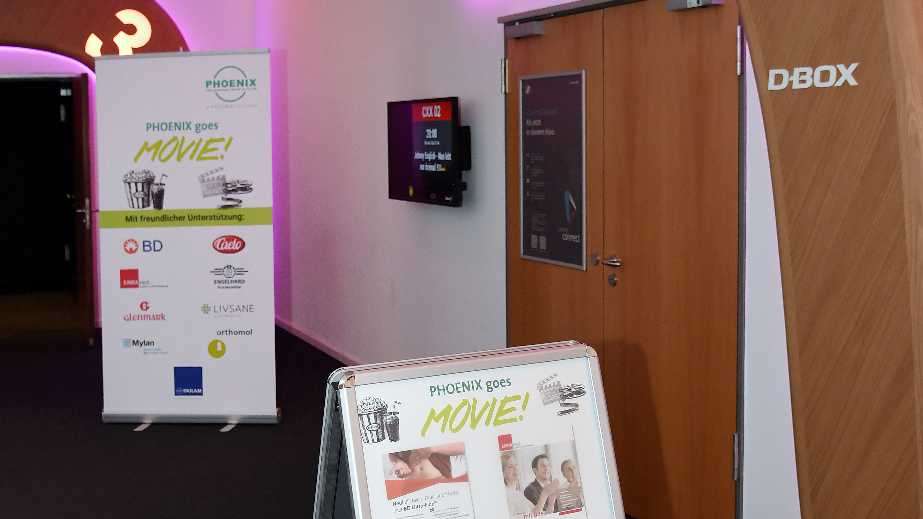 Die Idee dahinter sei es, „für das gesamte Apothekenteam ein Kundenevent zu schaffen, das ihnen Freude bereitet“, erklärt ein Phoenix-Sprecher, „also kein klassisches Verkaufsevent, sondern etwas außerhalb des Berufsalltags“. Für die Phoenix-Kunden ist der Abend komplett kostenlos: Vom Sektempfang über Softdrinks bis zum Popcorn ist alles gesponsert. Im Saal angekommen, erwarteten die Kinogänger dann Produktproben, sowohl von der Phoenix-Eigenmarke Livsane als auch von verschiedenen Partnern wie Orthomol, Mylan oder Engelhard.