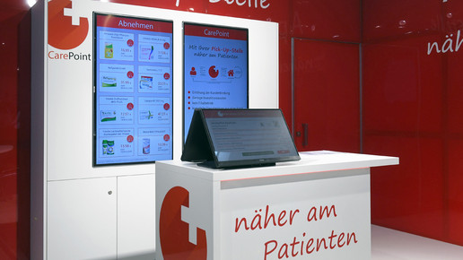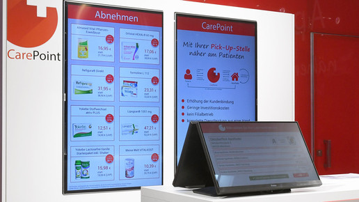 Die teilnehmenden Apotheken müssen über eine Versandhandelserlaubnis verfügen. Über Bildschirme können auch OTC-Produkte bestellt werden. An der Pick-up-Stelle berät ein Mitarbeiter des Unterföhringer Firma. „Patienten wollen das Rezept nicht einfach in einen Schlitz werfen, sondern sich unterhalten“, so Schwandner. Bei der Beratung gehe es aber lediglich um organisatorische und nicht pharmazeutische Fragen.