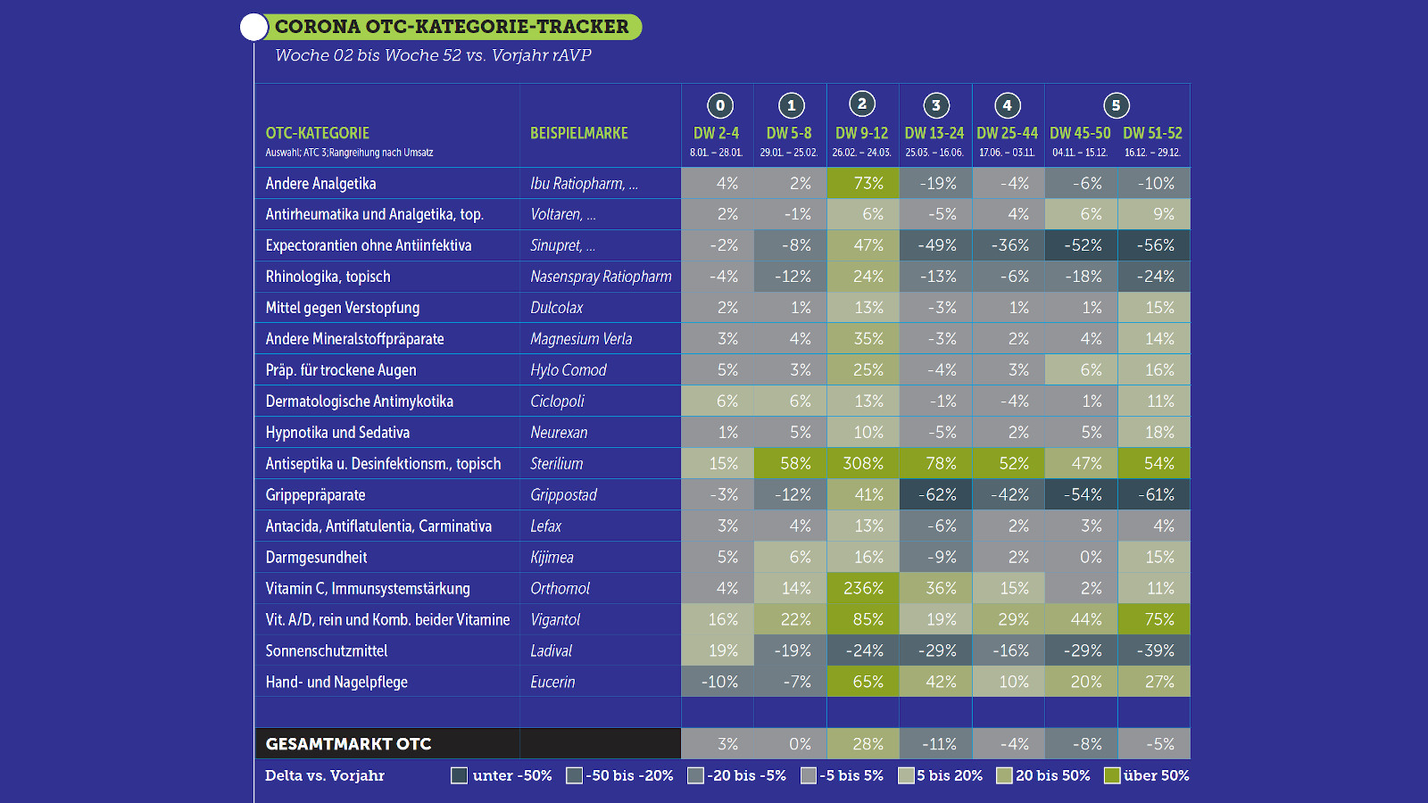 Ganz anders im Versandhandel: Hatten die Hamsterkäufe im März für ein Plus von 23 Prozent gesorgt, lagen die Umsätze im weiteren Jahresverlauf durchweg um 8 Prozent höher. Zum Jahresende dann der Rekord: Um 31 Prozent legten die Abverkäufe in KW 51 und KW 52 zu.
