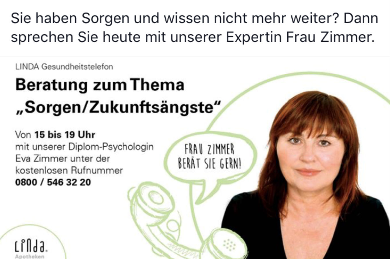 ZIMMER: Ich hatte die Idee einer Sprechstunde in Verbindung mit einer Apotheke schon länger. In München habe ich auch einige Zeit in zwei Apotheken vor Ort einmal die Woche für drei Stunden Kunden mit ihren Problemen angehört und beraten. Dafür stand mir in den Apotheken jeweils ein separater Raum zur Verfügung. Das kam bei den Apothekenkunden sehr gut an und ich wollte das ausbauen. Ich bin dann mit Linda zusammengekommen und mache die Telefonberatung jetzt seit acht Jahren.