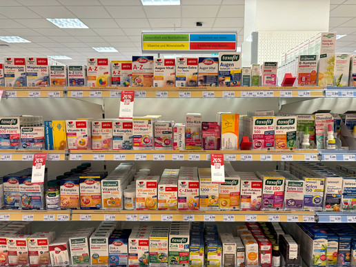 Zuletzt wurde das Apothekensortiment in den Märkten unter der Dachmarke „Gesundheit Plus“ separat beworben und angeboten. Dabei fokussierte sich Rossmann seit jeher stärker auf Nahrungsergänzungsmittel und Medikamente als etwa auf Apothekenkosmetik wie aktuell Müller mit seiner Freiwahl-Offensive.