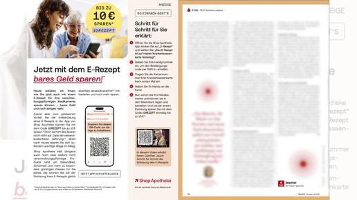 Über acht Seiten erstreckt sich in der aktuellen Öko-Test-Ausgabe ein Beitrag zum Thema Schmerzsalben – dieser Eindruck entsteht zumindest mit Blick ins Inhaltsverzeichnis. Doch der Text wird durch eine komplette Werbeseite von Shop Apotheke unterbrochen. Dabei geht es nicht nur um die E-Rezept-Einlösung beim Versender, sondern um das Gesamtkonzept.