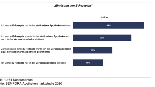 Sempora hat im Februar und März, noch vor Auftreten eventueller Effekte durch Covid-19, die entscheidenden Akteure im Apothekenmarkt zu aktuellen Themen befragt. Dabei wurden die Meinungen und Einschätzungen von 40 Entscheidern aus Pharmaunternehmen, von 135 Apothekern und von 1164 Konsumenten eingeholt. Trotz eines hohen Vertrauens gegenüber den stationären Apotheken nehme der Trend in Richtung Versandhandel weiter zu. Laut Befragung haben 67 Prozent schon einmal im Versandhandel bestellt und auch die Einlösung von Rezepten bei Versendern gewinnt an Beliebtheit: 35 Prozent der befragten Konsumenten haben ihre Rezepte schon einmal bei einer Versandapotheke eingelöst (plus 3 Prozentpunkte zum Vorjahr) und 23 Prozent tun dies sogar regelmäßig (plus 4 Prozentpunkte zum Vorjahr). Auch finden fast ein Drittel der Befragten den mit der Einlösung eines Rezeptes verbundenen Bonus trotz des aktuell noch hohen Aufwandes attraktiv.