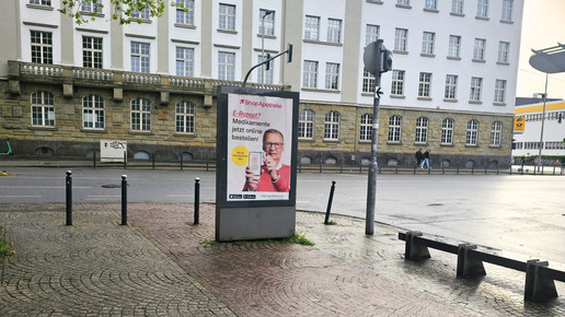 Eine Plakatierung direkt vor Apotheken ist nicht neu. So staunte eine Apothekenmitarbeitende nicht schlecht, als im September auf einer nahegelegenen Plakatwand ein Werbeplakat von DocMorris angebrachte wurde – zum Thema E-Rezept. Das setze der aktuellen Lage der einzigen Apotheke in einem hessischen Kleinort die Krone auf, fand eine PKA aus dem Team. In Mittelhessen musste die Werbung der aktuellen bundesweiten Kampagne nach einem Tag weichen. Denn die Vermieterin hatte bei der Errichtung der Plakatwand eine Sonderklausel für die eigene Apotheke eingefügt.