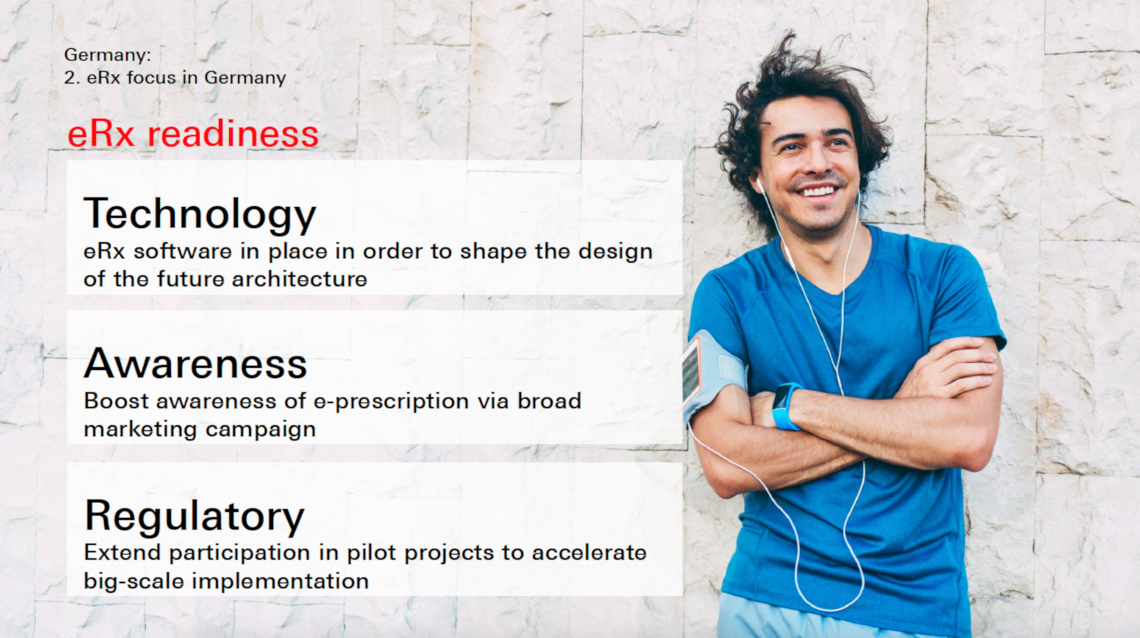 Sorge vor gesetzlicher Regulierung seines Geschäftsmodells zeigte Feltens dabei nicht. Der gesetzliche Rahmen für die Einführung des E-Rezeptes stehe bereits, jetzt gehe es nur noch um technische Fragen. Ganz richtig ist das nicht: Im vergangene Woche vorgestellten Referentenentwurf für ein Patientendaten-Schutzgesetz (PDSG) werden auch regulatorische Fragen zum E-Rezept behandelt, die sich – zumindest theoretisch – im Laufe des Gesetzgebungsprozess noch ändern könnten. So oder so, von der Einführung des E-Rezepts erhofft man sich in Venlo viel Geld: Die Dynamik im Verdandapothekenmarkt werde sich nach seiner Überzeugung mit der Einführung des E-Rezepts und digitaler Gesundheitsservices deutlich erhöhen. „Ab circa Mitte 2021 erwarten wir einen deutlichen Umsatzschub im Geschäft mit verschreibungspflichtigen Medikamenten“, so Feltens.