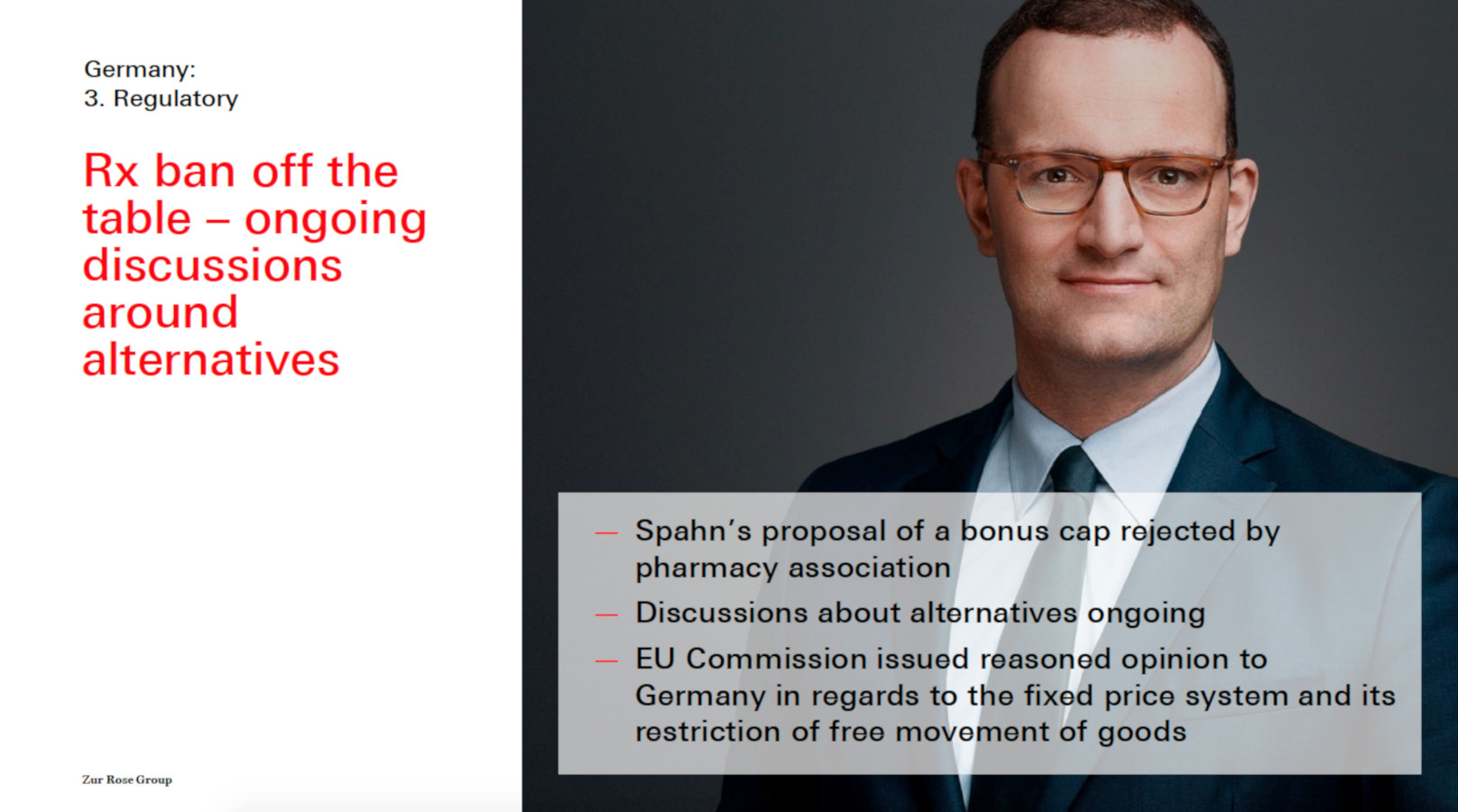 Dass der Gesetzgeber dem noch einen Dämpfer verpassen könnte, scheint ihm aber bewusst zu sein. „Die aktuelle Diskussion um den sogenannten Rx-Bonus begleiten wir konstruktiv; die Rechtslage ist nach dem Urteil des Europäischen Gerichtshofs vom Oktober 2016 aus unserer Sicht eindeutig.“