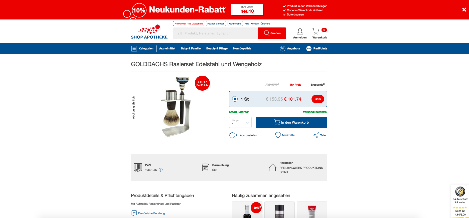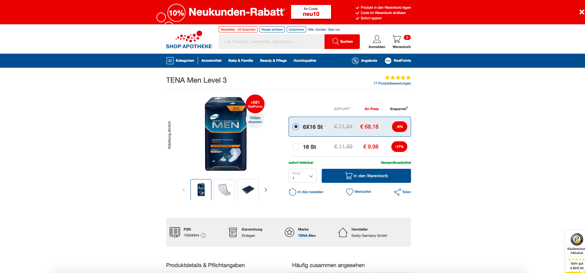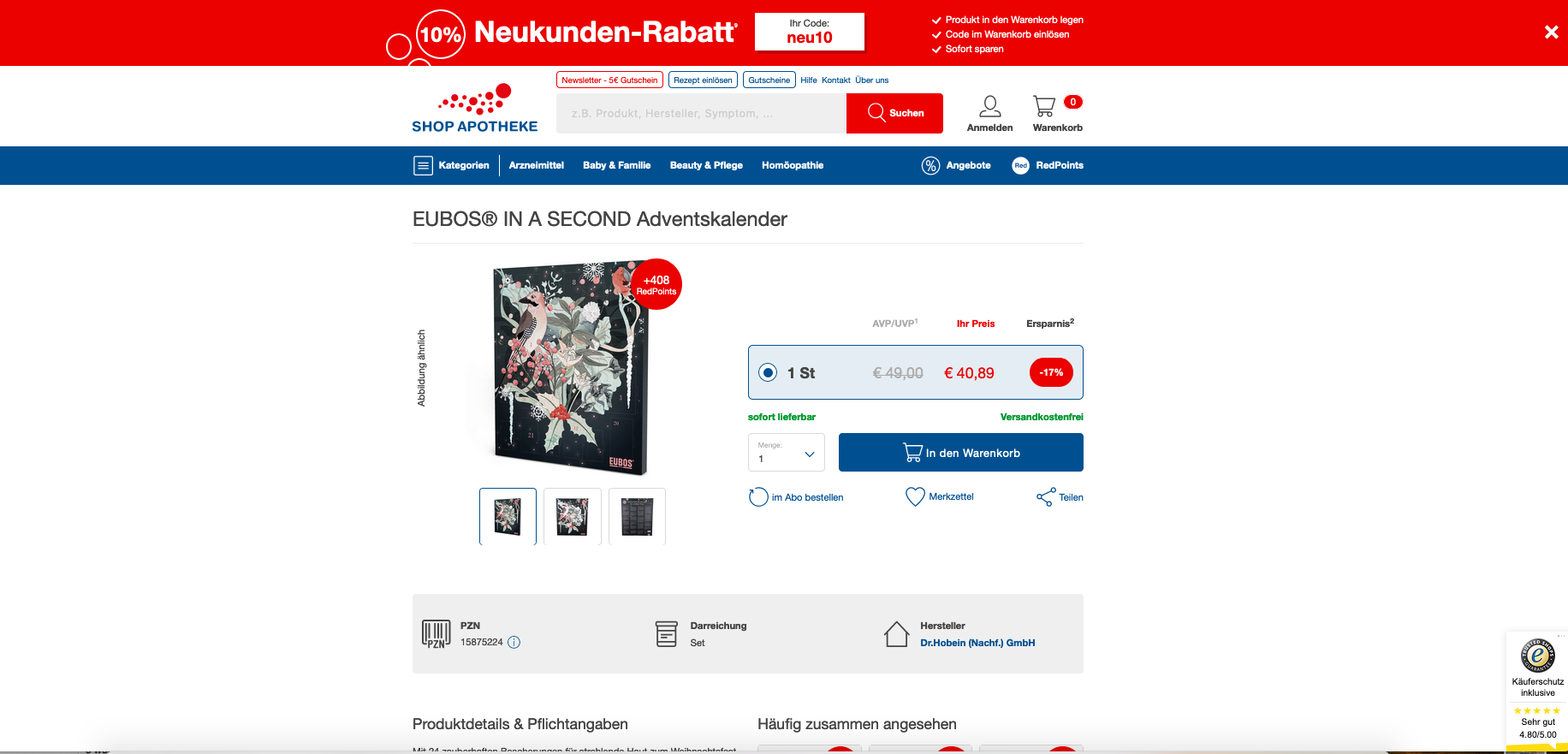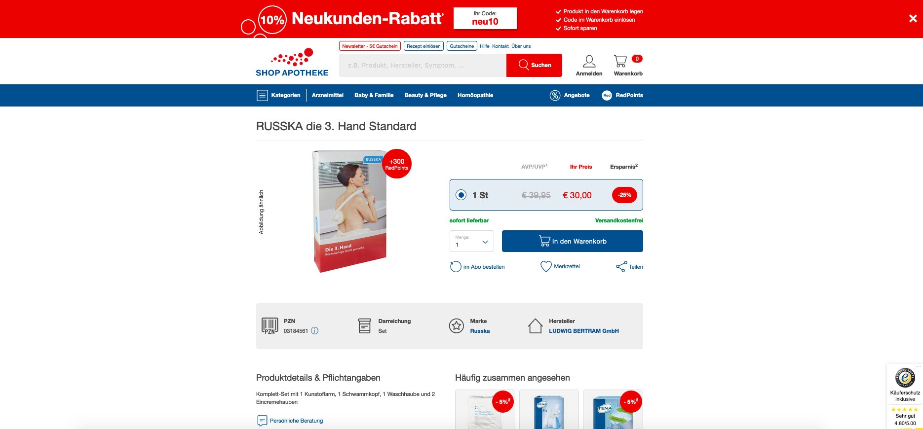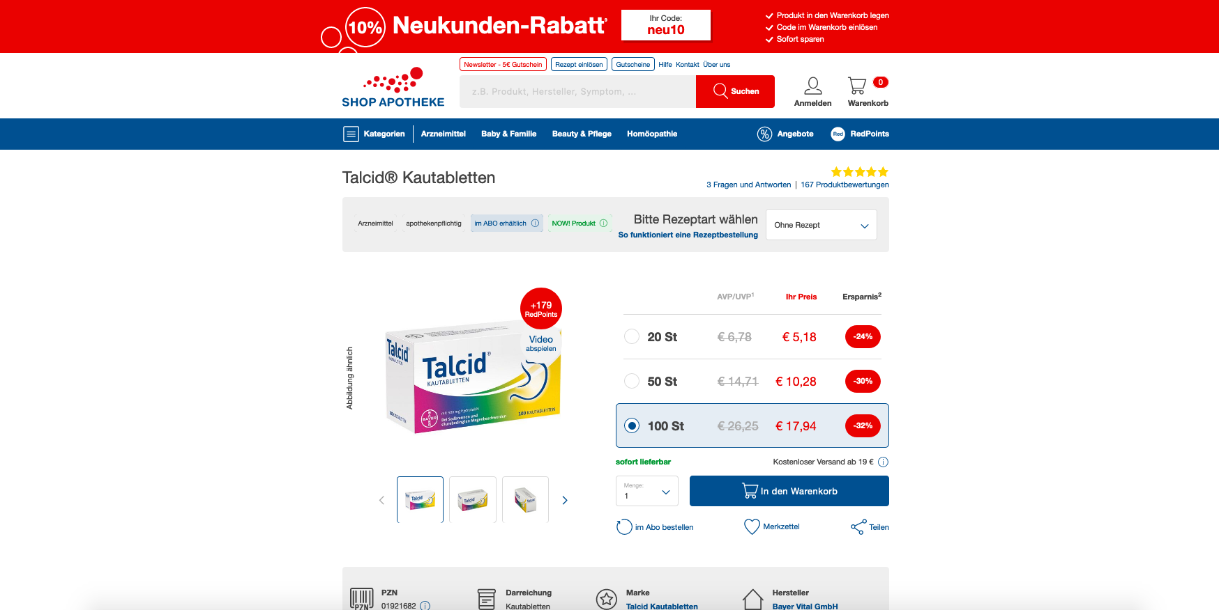 Allerdings sind Arzneimittel dabei – anders als etwa bei Amazon, wo seit Jahren Spar-Abos auch für freiverkäufliche Gesundheitsprodukte angeboten werden. So kann bei Shop Apotheke etwa Voltaren forte bestellt werden, und zwar monatlich bis zu fünf Packungen à 180 g. Man kann diese Höchstmenge sogar überschreiten, indem man bestätigt, dass es sich um eine Sammelbestellung handelt. Dann können bis zu 15 Packungen bestellt werden.