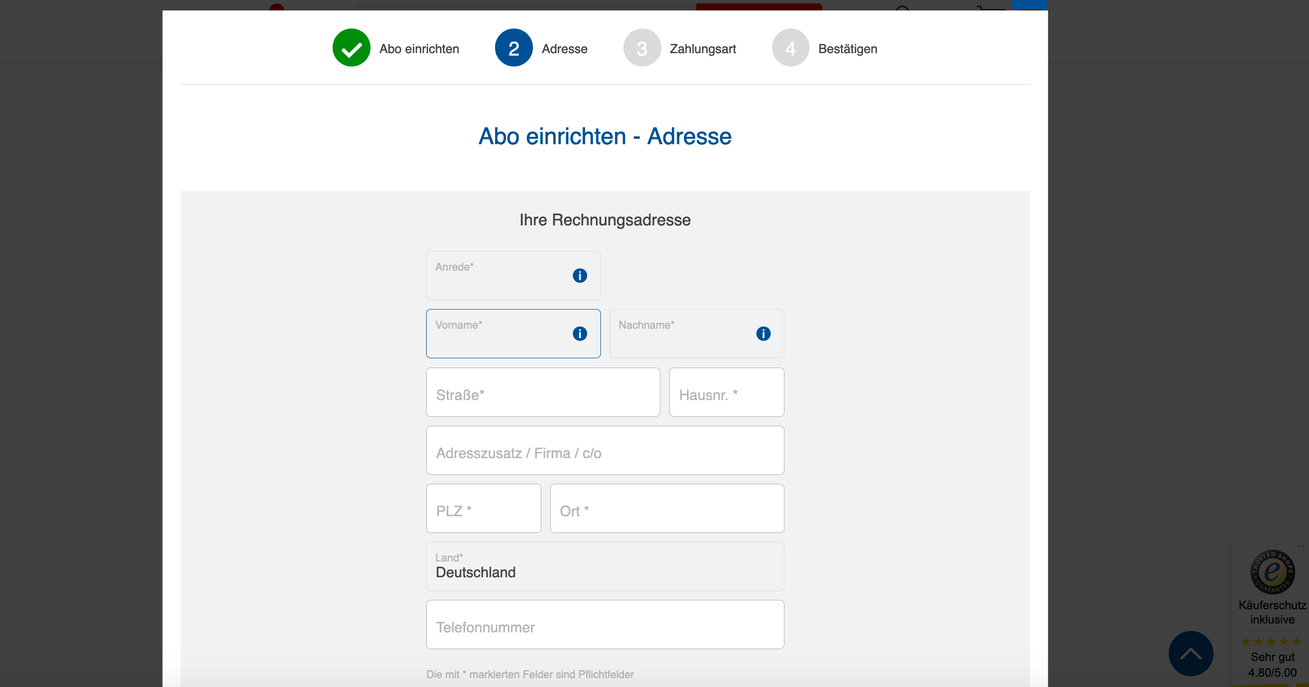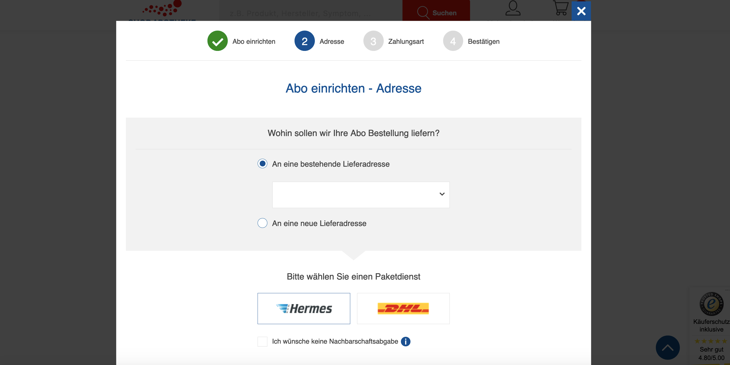 Wer also bestimmte Produkte automatisch zugeschickt bekommen will, muss ein Abo bestellen statt es in den Warenkorb zu legen. Dabei werden Anzahl und Lieferintervall ausgewählt, die Lieferadresse angegeben und Paketdienst und Starttermin festgelegt. Bestellung prüfen, fertig.