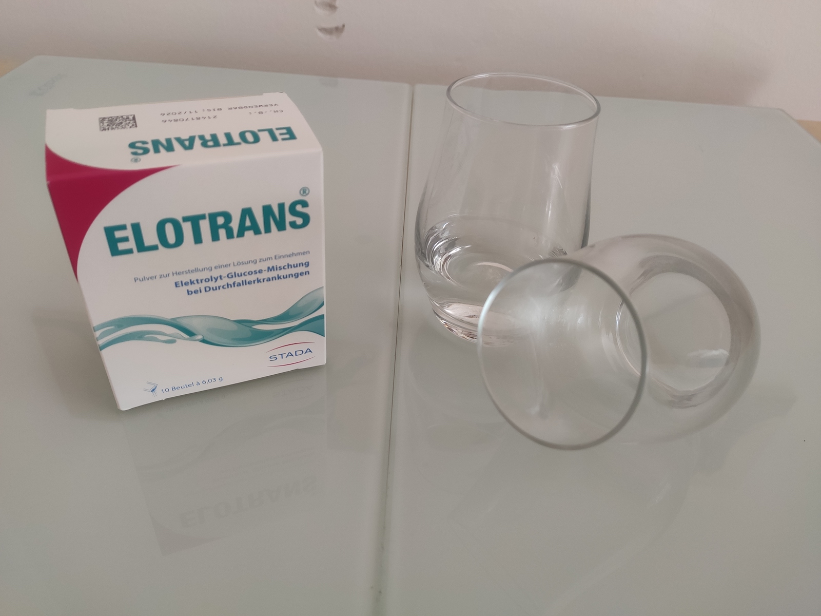 Elotrans ist ein Arzneimittel zum Ausgleich eines Flüssigkeitsmangels bei Durchfallerkrankungen, wie es in der Packungsbeilage des Medikaments heißt. Das Gemisch, das man in einem Glas Wasser auflösen und anschließend trinken soll, enthält Salze (Elektrolyte) und Glucose.