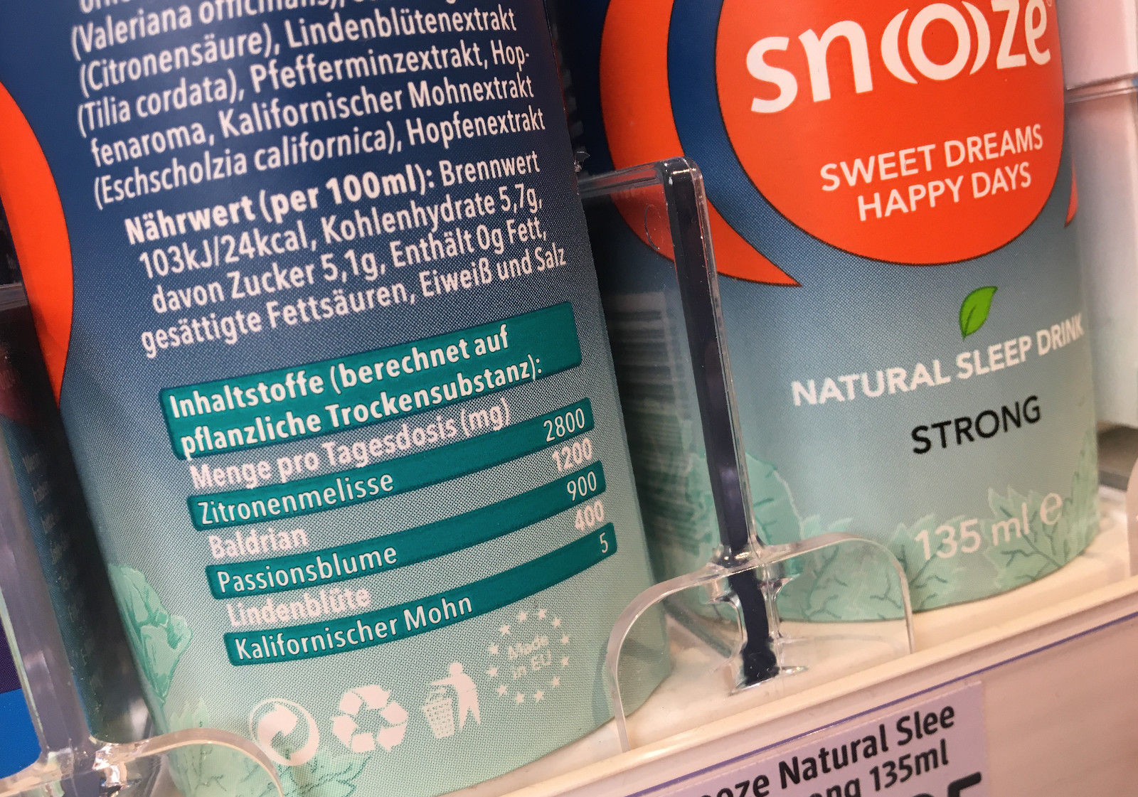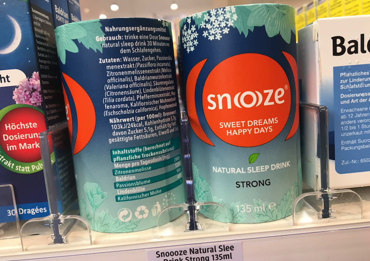 Bei dm gibt es zwei neue pflanzliche Produkte zur Einschlafförderung: Das Produkt Snoooze kommt direkt trinkfertig in die Regale. Bad Heilbrunner bietet einen löslichen Schlaf- und Nerventee in Arzneiqualität und erweitert damit das Portfolio der Granulate.