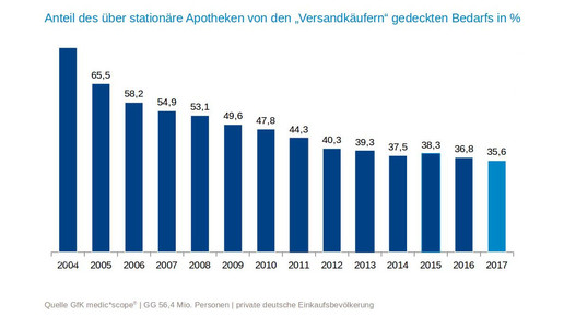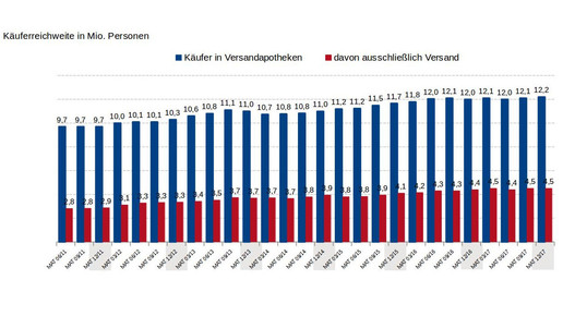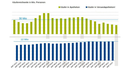 Die Reichweite der Offizinapotheken ist laut Weidle sogar rückläufig, seit zwei Jahren ist sie unter die Grenze von 30 Millionen Verbrauchern abgesackt. Insgesamt gibt es in Deutschland rund 56 Millionen Menschen, die selbstständig ihre Einkäufe erledigen können.