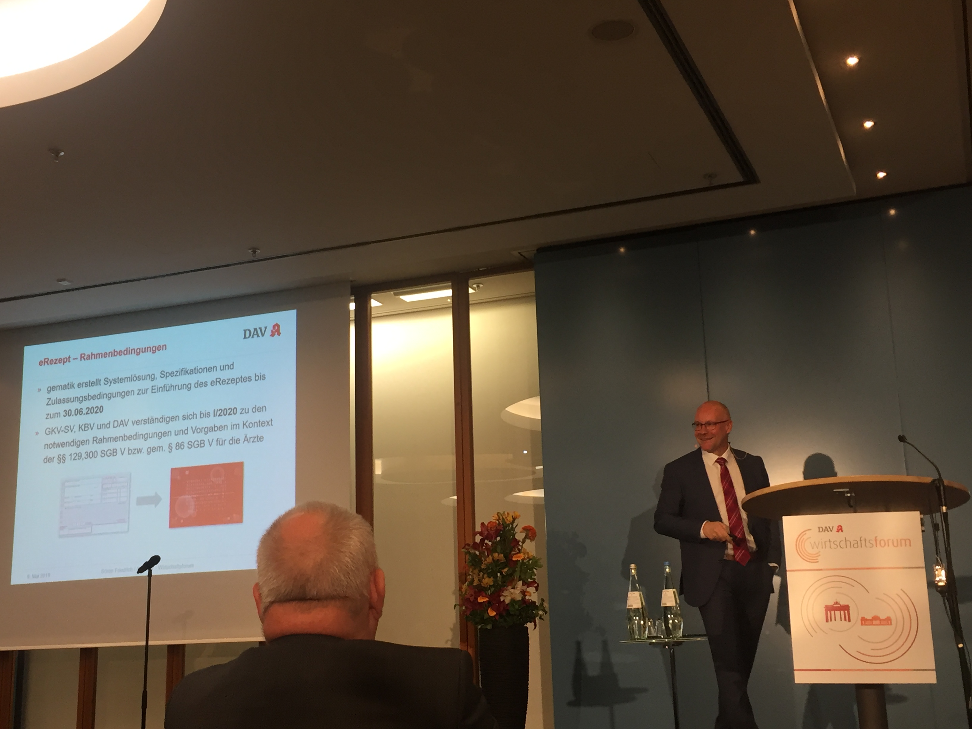 Der zweite Tag des DAV-Wirtschaftsforums steht im Zeichen von Digitalisierung, E-Rezept und elektronischer Patientenakte. Unter anderem Friedrich erklärte, wie der Fahrplan der ABDA für die Digitalisierung in den nächsten Jahre ist. Dabei habe sich die Vision der ABDA für das E-Rezept bisher stark auf die Kommunikation der Leistungserbringer untereinander konzentriert, „der Patient war da bisher nur als Beifahrer an Bord“, so Friedrich. Dabei gelte es, die Patientensouveränität zu stärken. Es müsse beispielsweise für den Patienten die Möglichkeit geben, das E-Rezept zu löschen.